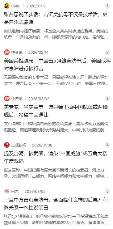 恐怕中国现在担心的不是能不能击沉美航母,而是击沉航母后造成核泄漏的问题。中国现在至少有七、八种摧毁美航母的方法:重型反舰导弹、高超音速反舰导弹、重型鱼雷、空射巡航导弹、陆射巡航导弹,钻地弹、温压弹、大型无人机等。不须击沉,将其摧毁失去战斗力即可。但由于中国的高超音速反舰导弹实在是太厉害。 麻烦看官老爷们右上角点击一下“关注”,既方便您进行讨论和分享,又能给您带来更多优质的内容,感谢您的支持! 美国那些在大洋上晃悠的航母,跟咱们自己还在烧锅炉的航母可不一样,清一色全是核动力的。尼米兹级和福特级上都有两个核反应堆,内部用的都是90%以上丰度的核燃料,加起来超过300吨。说白了,这些航母压根就是海面上漂浮的“小型核电站”,而不是普通的军舰。 军事专家张召忠曾经说过一句大实话:把航母击沉不仅仅是技术活,简直是自杀式豪赌。虽然美军给核反应堆包了很厚的防护层,甚至还有自动关停机制,但在深海几千个大气压的挤压下,谁敢打包票说核反应堆一定不会破裂? 一旦核反应堆在海里破了口子,放射性物质渗出来,海洋洋流可不管你是谁家的污染,西太平洋漏的核污染,几个月就能飘到东南亚甚至美洲沿岸。到那时候,渔业报废、鱼类变异、沿海城市变成辐射区,这场仗就不是军事问题了,而是全人类的生态灾难。 有分析说核反应堆防护够厚,海水本身也能稀释辐射,但别忘了尼米兹级航母的燃料总量超过300吨,真要泄漏出来,那可不是闹着玩的。这种风险,谁也不敢赌。 正是因为核泄漏这个“雷”太大了,再加上击沉航母本身会带来军事升级的巨大风险,现在咱们的作战思路其实已经悄悄变了——不是非要把它炸沉到海底,而是让它彻底失去战斗力就够了。 这背后其实有很现实的考虑。一艘尼米兹级航母上就有五千多名美军官兵,真要把它击沉了,相当于一次干掉五千多人,这个伤亡数字在美国国内会造成什么样的冲击,不用想都知道。当年珍珠港也就两千多人伤亡,就已经让美国举国宣战了。把五千人一次性送进海底,任何一个美国总统都不可能坐得住。 所以说,现在的区域拒止战略,核心目标其实不是击沉,而是“拒止”和“瘫痪”——把航母逼退到第一岛链之外,让它没法靠近咱们的近海就行。哪怕一时半会儿逼不走的,也得让它失去起降舰载机的能力,变成一个在海面上漂着的废铁疙瘩。 有美国防务专家分析说,咱们手里握着至少七种可以摧毁美国航母的手段。我大概梳理了一下,包括陆基反舰弹道导弹(东风-21D、东风-26)、高超音速反舰导弹(鹰击-21)、空射巡航导弹、舰射巡航导弹、潜射重型鱼雷、大型无人机蜂群,还有钻地弹和温压弹等特殊弹种。 这里面,东风-21D算是开路先锋,射程大概1500公里,专门盯着第一岛链附近的目标打。东风-26就更狠了,射程能达到4000公里,机动变轨能力强得离谱,第二岛链以内的航母都得掂量掂量。 不过,要说最让美军头疼的,还得是鹰击-21高超音速反舰导弹。这玩意儿能全程以6马赫的速度飞行,末端俯冲的时候飙到10马赫。10马赫是什么概念?每秒3400多米,从发现到命中,留给航母的反应时间连30秒都不到。现有的宙斯盾防空系统面对这种速度的垂直灌顶攻击,基本等于摆设,拦截成功率不到15%。 有人可能会问,那舰载激光武器呢?美军确实在搞这方面的研究,但理论上一艘航母要拦截高超音速导弹,需要3兆瓦级别的激光系统,现有的伯克级驱逐舰连供电都满足不了。说白了,科技树还没点到这个层级呢。 水下的杀招也不能忽视。鱼-10重型鱼雷,射程至少50公里,威力对标美军的MK-48,一枚就够航母喝一壶的。再加上093B攻击核潜艇可以搭载潜射版的鹰击-21,在海底下突然冒出来打一发高超音速导弹,防不胜防。 海面上,055万吨大驱有112个垂直发射单元,一艘舰就能打出一个饱和攻击波次。空中还有轰-6N轰炸机挂着空射版鹰击-21,经过空中加油后作战半径能扩展到5000公里,从本土起飞就能打到太平洋深处。 其实单拎出来任何一种武器,单独对付航母都很吃力。毕竟航母不是光杆司令出门的,身边围着一圈驱逐舰、巡洋舰、核潜艇,天上还有预警机和战斗机,层层叠叠的防空网不是吃素的。 但咱们玩的是体系作战。从卫星侦察、无人机跟踪、数据链传输,到多平台同时开火,搞的是饱和攻击——一次性把防空系统的火力通道全部占满,让它拦都拦不过来。美军自己的内部评估报告《压倒性简报》都承认,在模拟的台海冲突中,福特号航母多次被“击沉”或“瘫痪”。 报告里说得挺直白:中国军队拥有超过600枚高超音速武器库存,以5马赫以上的速度和不可预测的弹道发起攻击,再加上反舰弹道导弹和巡航导弹的混搭,航母的防御能力瞬间就被压垮了。最要命的是,就算航母没被彻底击沉,只要飞行甲板被炸出一个大坑,舰载机起降不了,这条航母基本上就退出战斗了。