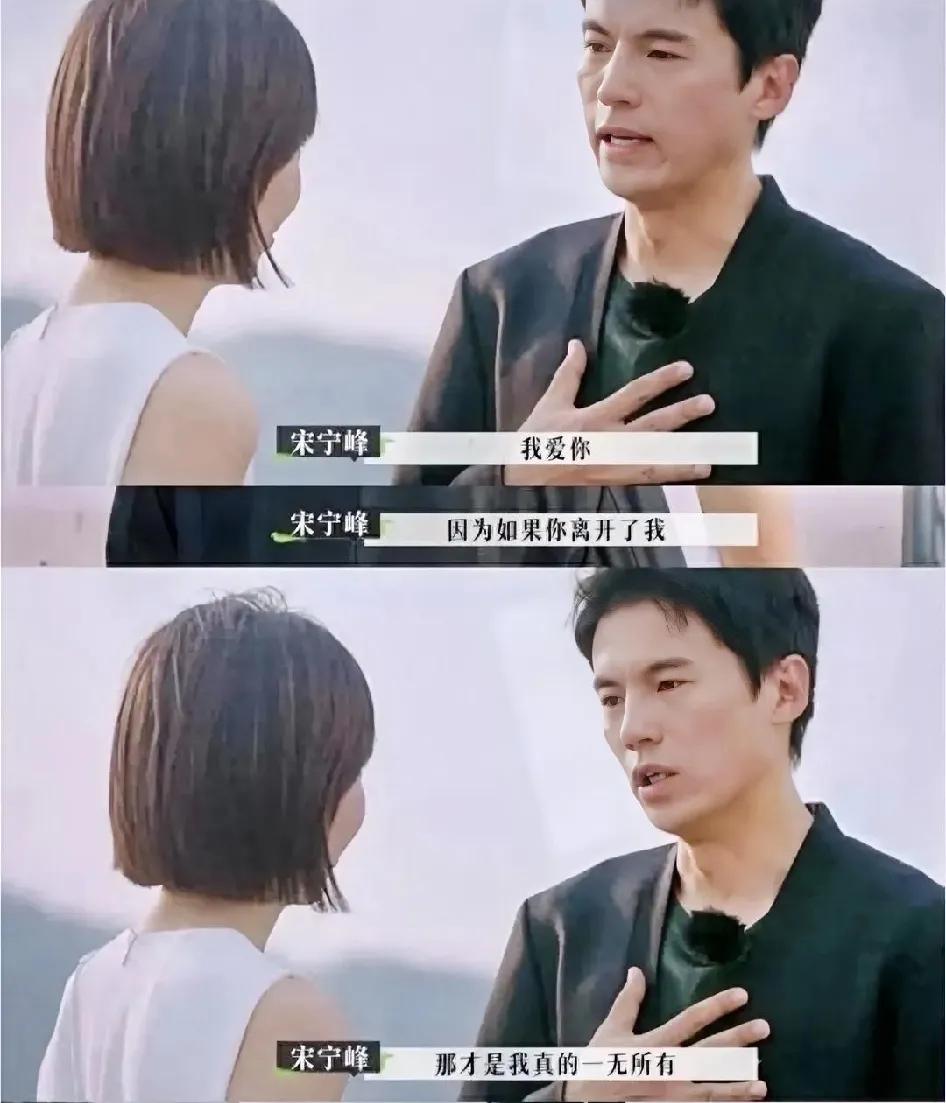 宋宁峰还是爱王婉婷的。 他说:“我爱你,因为如果你离开我了,那才是我真的一无所有”。 张婉婷条件很好,她曾是梅婷经经纪人,现是宋宁峰经纪人,也是他妻子。 而宋宁峰前女友是周迅,他喜欢去夜店玩摇滚。 张婉婷个人情感不够独立,又要面对内娱各种情况,感觉不到宋宁峰的爱,所以没安全感。 宋宁峰虽作为丈夫,能力上,却依赖张婉婷,希望张婉婷让自己自由点,别太约束,把张婉婷当成父母的角色。 所以,张婉婷哪怕在综艺中,情感无处安放,只能习惯对宋宁峰各种不满。 她变得说话带刺,是情感觉得委屈,又无从说起的表现,你们觉得呢?