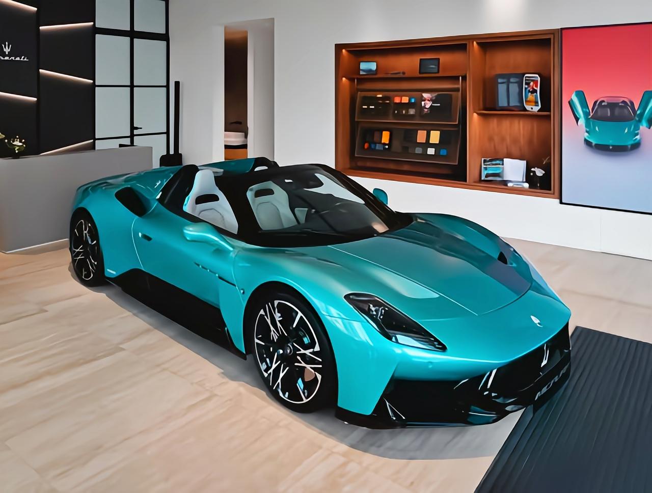 玛莎拉蒂MCPura(敞篷版)国内实车亮相,中置布局 零百2.9秒 外观,前脸大尺寸梯形中网+三叉戟徽标,垂直LED日行灯+锐利大灯。前包围借鉴赛车,蜂窝进气口散热效率高,前唇、侧裙都是碳纤维。 车身中置后驱跑车比例,蝴蝶门,用多辐式轻量化轮毂,可选碳纤维材质,电动变色PDLC玻璃车顶,能切换透明和遮光模式。 车尾,镰刀状贯穿式LED尾灯,中置单出排气+大碳纤维扩散器,还有自适应或固定式碳纤维扰流板。 动力上,海神3.0升V6双涡轮发动机,F1预燃室技术,最大功率630马力,扭矩720牛·米或730牛.米。 8速湿式双离合变速箱,换挡快,支持弹射起步。用碳纤维单体壳车身+磁流变减震和后轮主动转向。 零百加速2.9秒,极速预计超325km/h,还有赛道级冷却系统,主动阀门排气有三档。 最后,玛莎拉蒂MCPURA(敞篷版) 的主要亮点: 630马力 3.0T V6发动机零百2.9秒,中置后驱+碳纤维车身+后轮转向,操控好。 PDLC变色玻璃车顶,蝴蝶门+碳纤维套件。 但实用性低,储物小,维保贵、保值率一般,预计定价偏高,小众玩乐超跑,适合喜欢驾驶的人。