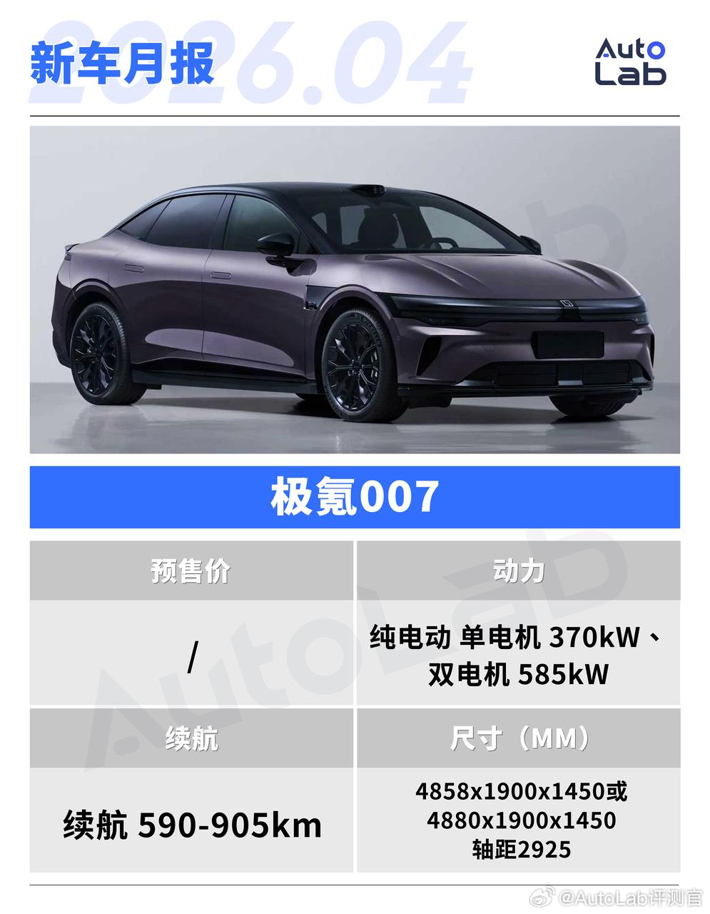 给大家汇总了一波4月的新车,大家最期待谁,评论区聊聊