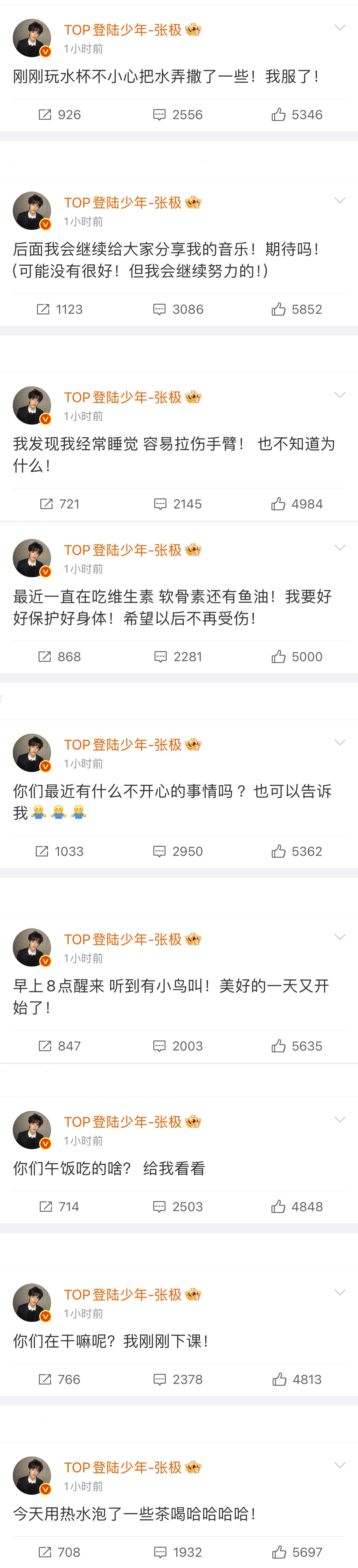 笑晕了,张极和粉丝的碎碎念分享工作生活日常好可爱今天有录音,还在上课,让粉丝别感冒了,真是善良宠粉的乖宝宝,期待新歌啦❗️