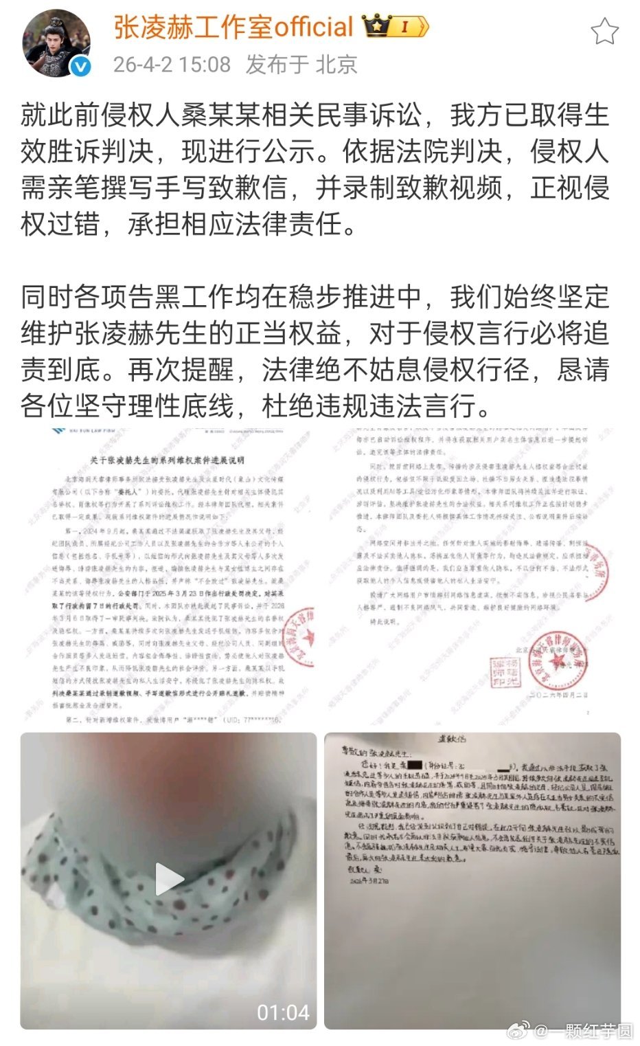 张凌赫 之前告嘿的这个人非法获取个人信息,之前已行政拘留,现在胜诉了!嘿子手写道歉信并录视频!