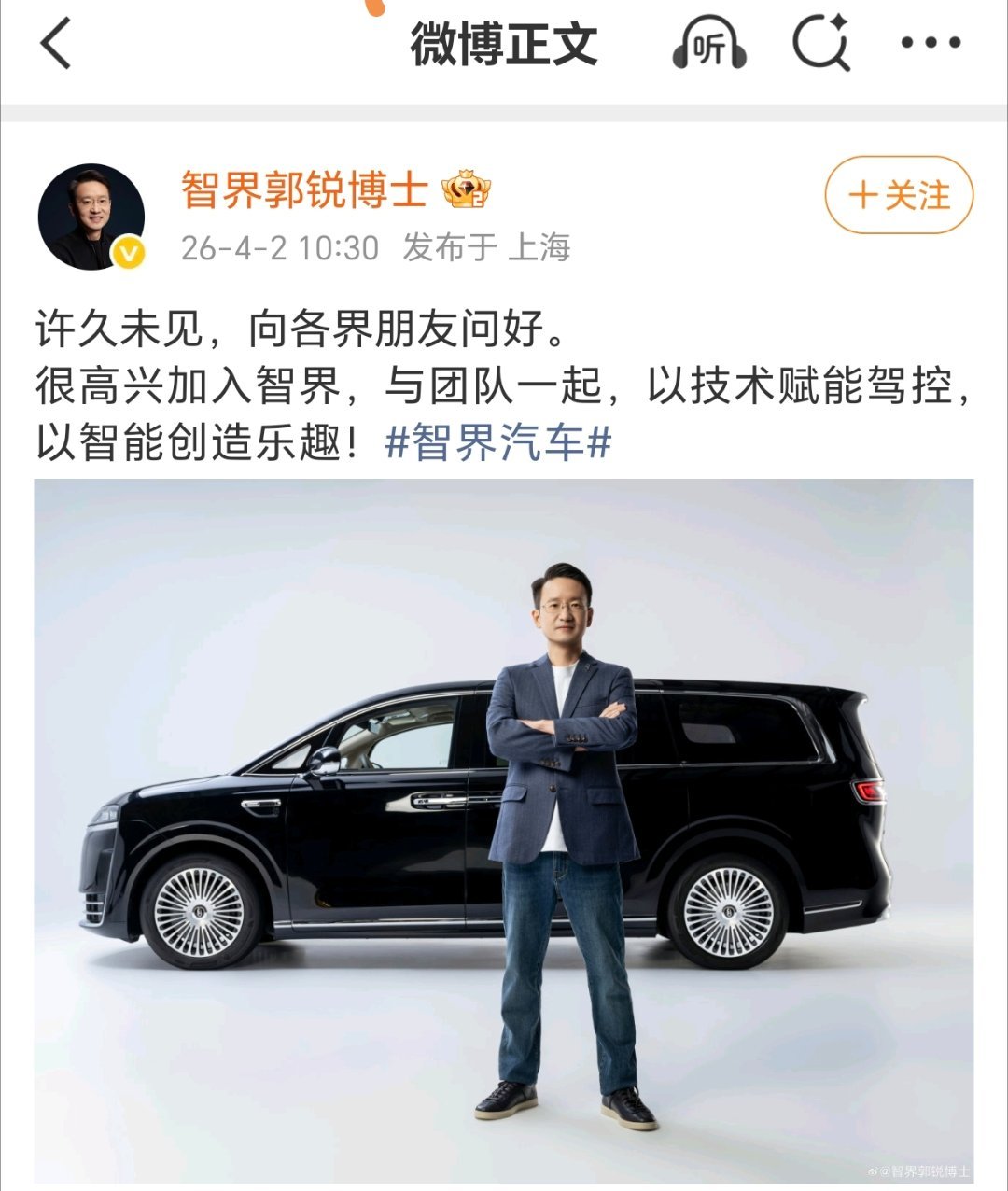 【郭锐出任智界汽车董事长兼 CEO:曾任华为终端大中华区 CMO、荣耀品牌营销总裁】