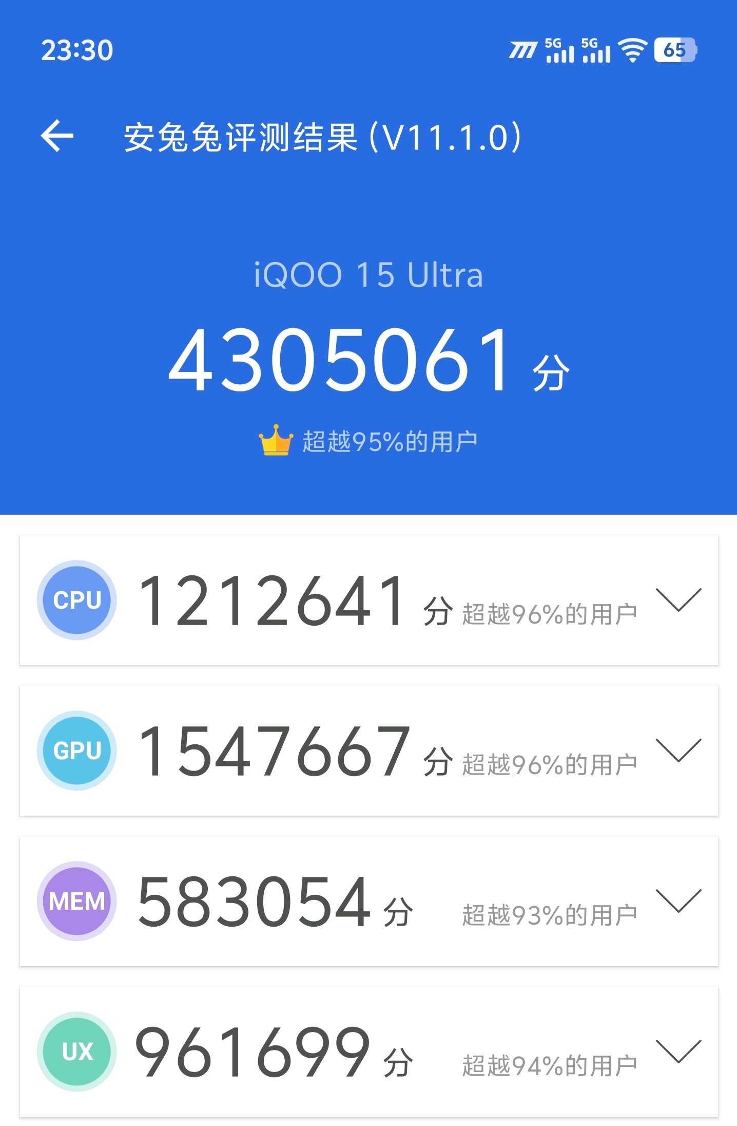 iQOO 15 Ultra性能和游戏实测:搭载了第五代骁龙8至尊版和风扇的它,通过实测,安兔兔常温跑分430万5千+,Geekbench 6单核3774分、多核12043分,3D Mark Wild Life 28924分,Wild Life Extreme 8181分,玩了一个多小时NBA 2K特效+画质全高,全程维持在120fps甚至更好,真的流畅。有散热风扇,性能释放确实更强。满意了吗?