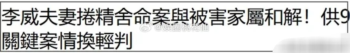 李威卷入台北精舍命案后续来了!去年李威被曝卷入命案,侦查结束后以伤害致死、伪造文书、诈欺等罪起诉王蕰、李威等人。据台媒最新报道,受害者家属已经和李威夫妇达成和解,请求法院从轻判刑,引发热议。
