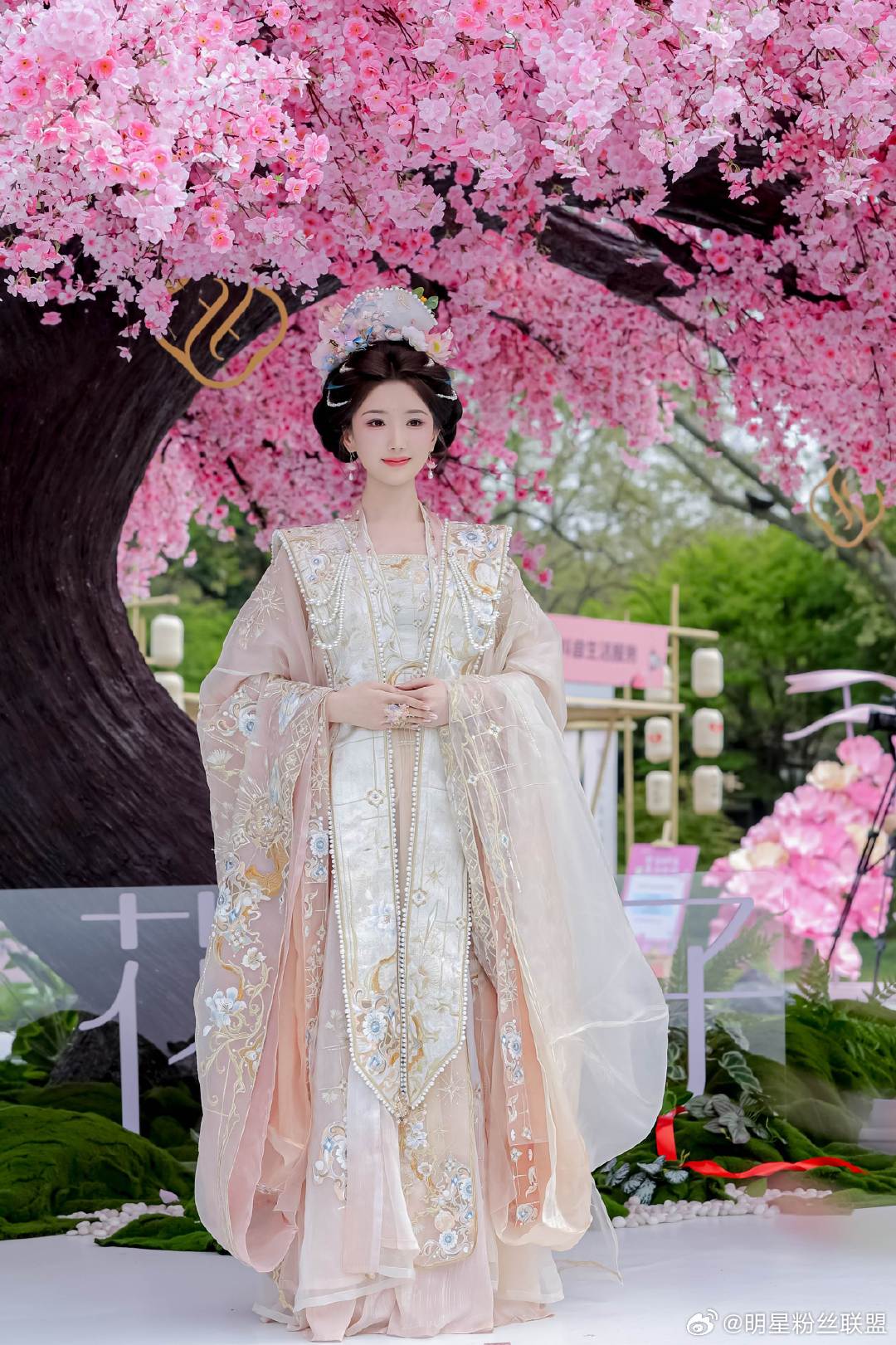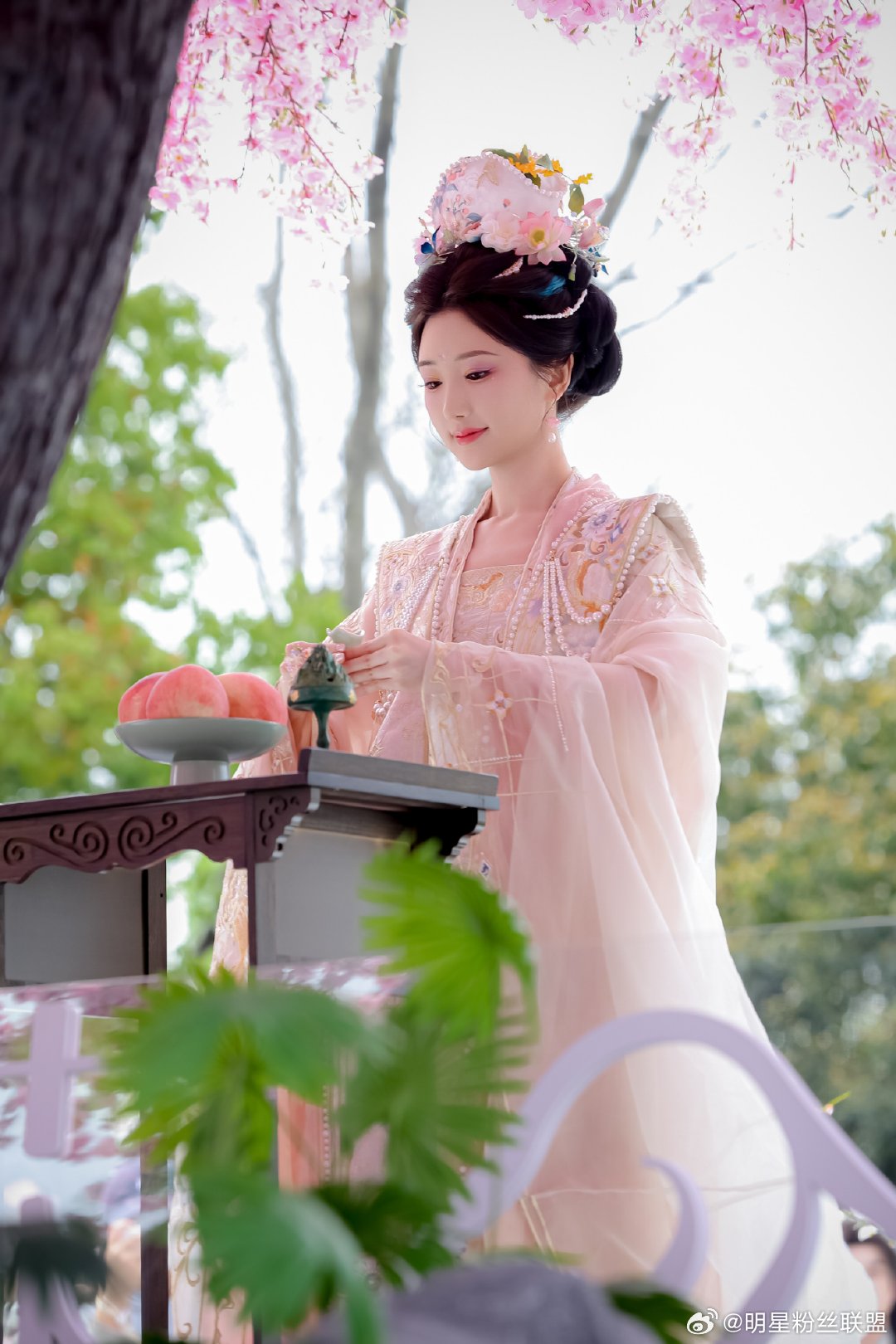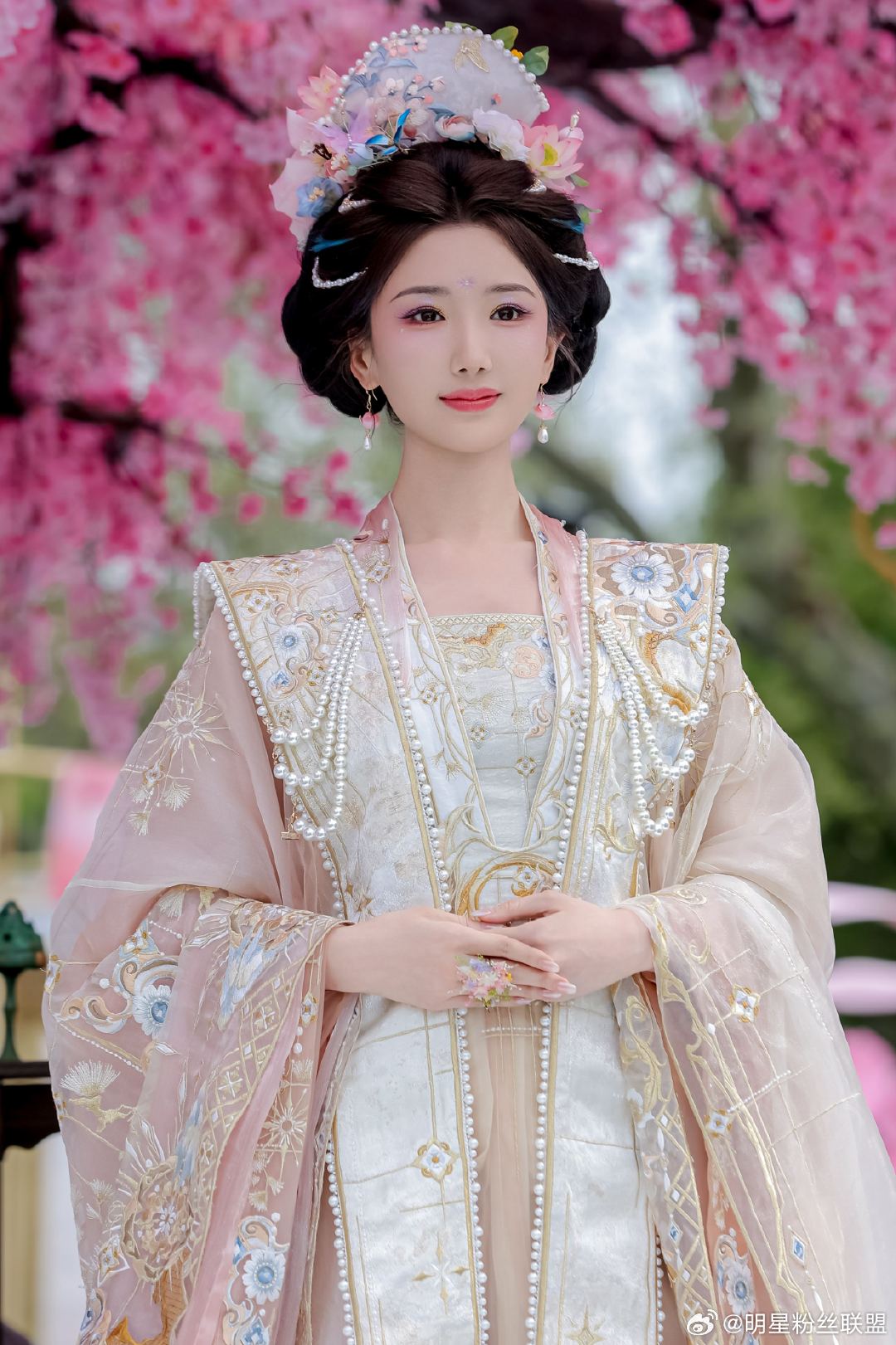 毛晓彤花神妆 直接被毛晓彤花神妆美到失语,整体造型贴合花朝盛景,鲜花饰发温婉动人