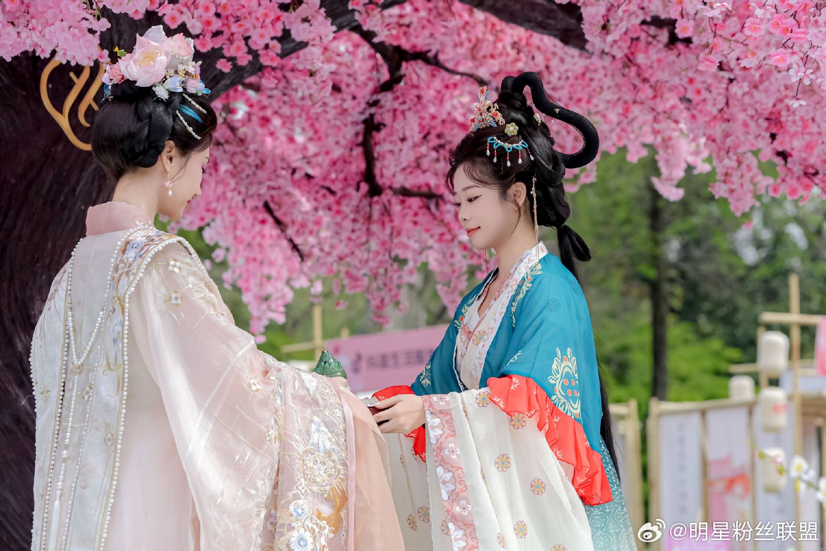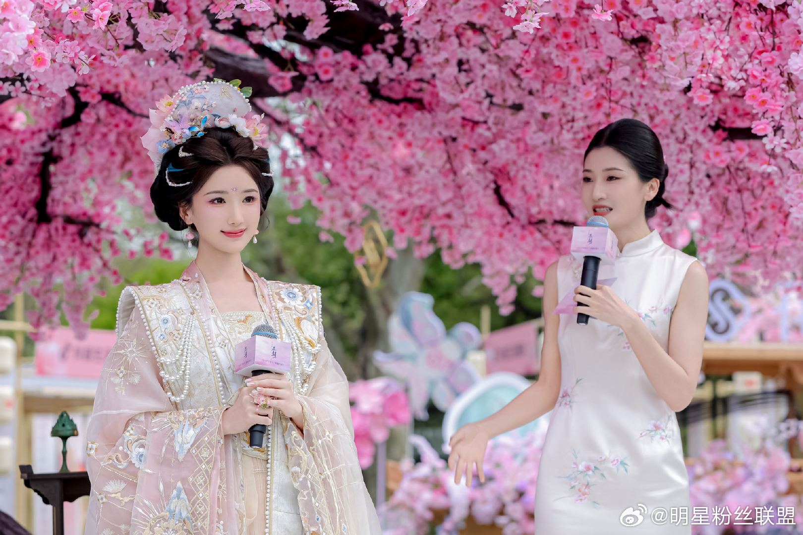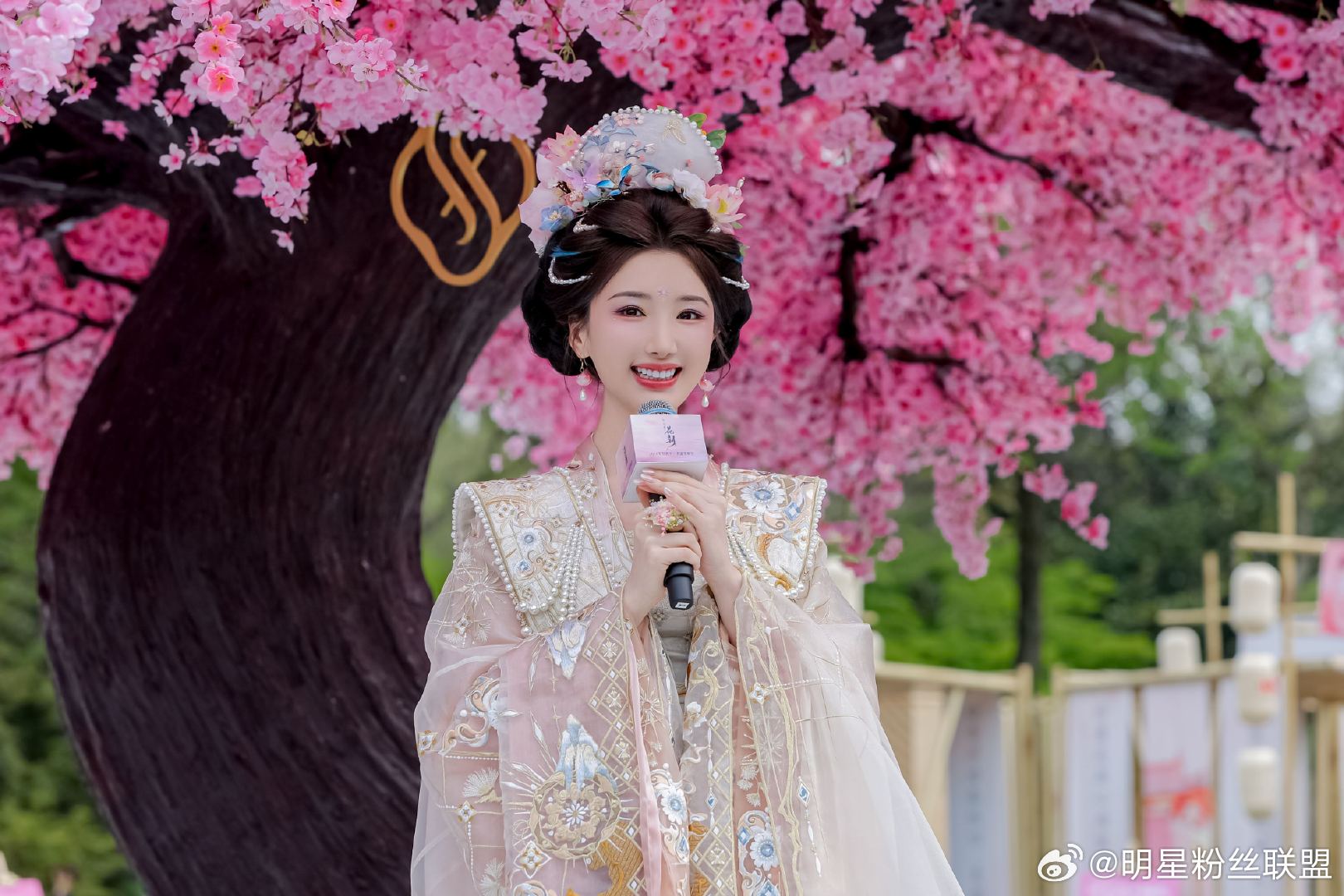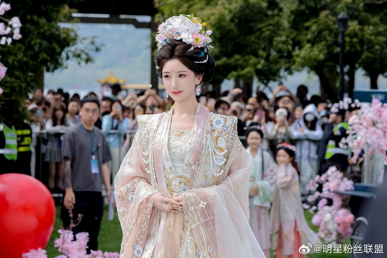 毛晓彤花神妆 直接被毛晓彤花神妆美到失语,整体造型贴合花朝盛景,鲜花饰发温婉动人