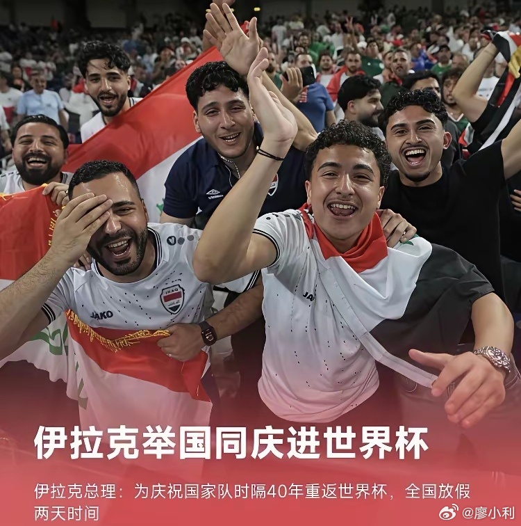 为伊拉克庆祝的同时,我在想:我们还要等多久?假如中国队打进世界杯,国家会放几天假呢?2002年到2026年,已经整整24年没有进世界杯了,已经快忘记中国挺进世界杯的样子了。当时看国足踢世界杯的那批人已经成为中年大叔和老阿姨了。小利说事热点观点
