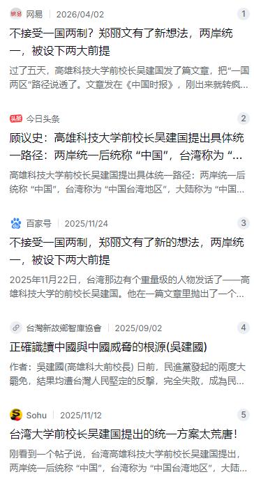 高雄科技大学前校长吴建国提出具体统一路径:两岸统一后统称 “中国”,台湾称为 “中国台湾地区”,大陆称为 “中国大陆地区”。内部治理则保持不变,依照各自现有法律 “依法分治两地区”。 麻烦看官老爷们右上角点击一下“关注”,既方便您进行讨论和分享,又能给您带来更多优质的内容,感谢您的支持! 吴校长的意思其实挺简单,就是换了个更接地气的说法。他主张两岸统一后,外面统称就叫“中国”,给外人说的时候,咱们这边就叫“中国大陆地区”,他们那边就叫“中国台湾地区”。这招等于是先把一个中国的原则定死了,不给你含糊其辞的空间。 那内部怎么管呢?吴校长也给出了很实在的建议,叫做“依法分治两地区”。意思就是说,统一之后两边都继续用自己现在的法律体系来管自己的事儿,大家的生活方式、社会结构都维持原样,谁也别想着一下子就要把对方给改造了。说到底,吴校长就是抓住了现在台湾大部分人就想维持现状的心理,想让大家对统一不那么害怕。这种“各过各的,但对外一致”的思路,等于是把两岸最担心的制度冲突先给隔开了。 可能有人会觉得,这不就是“和平统一,一国两制”换了个包装吗?其实还真不太一样。吴建国更绝的地方在于,他不仅吸收了“一国两制”的精髓,还专门在“国号”这种极度敏感的名分问题上给出了让人耳目一新的方案。说白了,他就是想把“统一”这个门槛往下降一降,让岛内的百姓觉得,这不是要换个天,只是换个叫法,步子迈得小一点,大家才敢跟上。 说起这位吴建国校长,那可真是个有故事的人物。1950年出生的他,以前是正经八百的高雄科技大学校长,现在也长期担任中华世纪文教发展协会的理事长。这几十年来,他一直在两岸关系、文化教育这些领域深耕,从最早在国民党智库太平洋文化基金会做副执行长开始,就经常给两岸的领导人试水探路。他可不是什么一时兴起闹着玩的民间草根,他是真真切切地在为两岸寻找最有利的互动模式,在台湾学术界和文化圈都有着深厚的人脉和影响力。 其实,吴建国校长抛出这个重磅提议,并不是一个人闭门造车。它的背后有一股更强大的政治力量在做铺垫。当时刚当选国民党主席不久的郑丽文,其实早就在盘算着“一国两区”的路子了。作为党内的二把手,国民党副主席萧旭岑也多次在公开场合吹风,说这才是国民党未来的两岸路线。而吴建国这篇文章,等于是用一种学者的身份,把这个政治蓝图给画得更清楚了。说白了,这就是在试探大陆的底线,同时也是在测试岛内民众对这种具体路径的接受温差。如果反应好,那就大力推;如果骂声多,也可以说是学者个人观点,进可攻,退可守,这老姜确实够辣。 当然,这种方案一出来,肯定是要炸开锅的,争议和反弹那是必然的。很多人就担心,如果两边长期各管各的,那到底谁是话事人?会不会反而把统一搞成了形式,增加了以后治理的混乱和复杂度?这就像是两口子要是户口本都并到一起了,但吃饭还得分灶台、存钱还得分账户,时间一久,这感情还能不能维持下去,真是个大问号。 虽然争议不少,但支持这方案的人也大有人在,而且理由相当现实。现在两岸的经济早就是打断骨头连着筋了,台商在大陆投资遍地开花,台湾年轻人也大批大批地跑到大陆来创业生活,形成了一个事实上的共同体。既然钱都搅和在一起了,还非要在政治名分上硬碰硬,那不是跟自己过不去吗?所以,很多人觉得吴建国的这个方案虽然听起来有点理想化,但比那些整天喊口号、画大饼的空洞表态,要接地气多了,至少在现实中能操作。 说到底,两岸统一这事,光有情绪和口号可不够,还得看有没有真金白银和实打实的好处。吴建国在他的文章里看得也很透彻,如果统一能让台湾的企业家和老百姓吃到实实在在的甜头,那谁还会拒绝呢?他说啊,统一以后大陆完全可以彻底开放市场,让台湾的各种产品和服务顺着14亿人口的庞大需求赚个盆满钵满,这种红利绝对超乎想象。 除了赚钱,过日子也得有奔头。吴校长还描绘了一幅非常诱人的生活蓝图:什么环岛高速铁路、高速公路、现代化的城市建设,大陆的技术和经验摆在那里,可以帮台湾把基础设施提升一大截。甚至对台湾那些退休军公教警消人员,因为过去改革被削掉的退休金,大陆政府都可以给他们补发补齐。这等于是告诉台湾的老百姓,统一不是让你吃亏,而是让你立刻过上更有保障的日子。 不过,也不能光捡好听的说。这个方案要想落地,现在最大的拦路虎就是两岸之间的互信几乎荡然无存。现在两岸官方的沟通渠道基本处于停摆状态,两边对“一个中国”的内涵理解压根就没达成共识。你再怎么设计精巧的机制,如果双方连坐下来聊聊的诚意都没有,那也只能是纸上谈兵。而且大陆在推进统一这件事上,是有着一套经过反复讨论和确定的大政方针的,个人的学术建议固然有价值,但很难轻易改变既定的大框架。