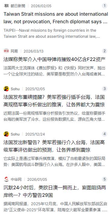 法国发布重磅提醒?美军若强行插手台海,法国高规格军事分析做出的推演,让各界都大为震惊。 麻烦看官老爷们右上角点击一下“关注”,既方便您进行讨论和分享,又能给您带来不一样的参与感,感谢您的支持! 报告一开篇就没急着谈航母导弹,而是先给你算了一笔账,从咱们每个人的钱包聊起。它说,要是台海真打起来,全球最先崩的不是哪个军事基地,而是你手上那个智能手机。为啥?因为全球超过90%的最先进芯片都是台湾台积电生产的,一旦生产线停摆,芯片供应链瞬间断裂,新款手机、智能汽车这些产品价格马上翻倍,甚至有钱都买不到。金融市场的反应更直接,冲突爆发头三天,全球股市可能直接蒸发五分之一的市值,你辛辛苦苦攒的养老金瞬间缩水。黄金价格会猛涨,美元的地位也会跟着剧烈摇晃,一场远在天边的冲突,最终烧到的其实是咱们每个人的日常生活。 接着报告才进入正题,开始用兵棋推演模拟最紧张的那种场景——美军航母战斗群强行闯进台海。在很多人眼里,美国航母往那一停,基本上就能把场面镇住,但法国军方的推演结果完全不是这么回事。美军航母确实气势汹汹地开进来了,但迎面撞上的是一套被称为“反介入/区域拒止”的复杂防御体系。这套系统简单来说就是天上有卫星一天到晚盯着,海面和岸边全是雷达,编织成一张几乎没有死角的探测网,航母的一举一动都别想逃过。 真正的杀招是那些被军迷称为“航母杀手”的导弹,比如东风-21D和东风-26。报告里讲得很清楚,这些导弹速度极快,现有的防空系统根本反应不过来。它们不光飞得快,在接近目标时还会做各种复杂的蛇形机动,防空系统压根摸不准弹道,根本拦不住。推演的结果非常具体:开战之后72小时内,至少两艘美军核动力航母会被直接击沉,十几艘巡洋舰和驱逐舰跟着报销,数千名美军士兵葬身海底。跟着美国一起来的日本自卫队也好不到哪去,上百架先进战斗机和二十多艘舰艇全部交代了,报告管这叫作“战略性滑铁卢”,是那种能动摇一个国家根基的惨败。 看到这儿你可能会问,美军装备不是全世界最先进、打仗经验不是最丰富吗,怎么会在推演里输得这么惨?法国报告没有只盯着战场上的胜负,而是把目光放到了更深远的地方——后方的工业生产能力。报告引用了美国战略与国际研究中心的数据,说美国有些关键武器的生产速度远远跟不上高强度战争的需求,一个月生产的标枪导弹,可能一个星期就用完了。前线士兵再勇猛,后勤跟不上,那仗也打不下去。这背后是美国这些年去工业化的后果,很多生产线要么停产,要么产能严重不足。 反观中国这边,工业体系完全是另外一番景象。一旦全面开动生产,那产能是相当惊人的,外媒用“下饺子”来形容中国的造舰速度,有人说中国一年能造出一个法国海军。在导弹这些消耗品上,中国的年产量足以让任何对手在持久战面前感到绝望。一个看似装备强大但经不起消耗,一个像耐力型选手能持续不断地打下去,法国军方的结论很直白:最先撑不住的,很可能不是美国士兵,而是他们的弹药库。 其实不光法国在做这种推演,美国自己的智库早就把同样的事干过好几轮了。美国战略与国际研究中心2023年发布了一份针对2026年台海冲突的报告,整整做了24次模拟,地图覆盖西太平洋和台湾地区,每一轮跑出来的数据都够吓人。美军最关键的远程反舰导弹库存,全球大约450枚,在冲突头一周内就全部打光了。后续只能靠射程更短的武器,战机得往目标区飞得更近,生存率直线往下掉。美国布朗大学的专家戈德斯坦更是直言,美国战略与国际问题研究中心前前后后搞了40次兵棋推演,没一次例外——只要外部势力敢强行介入,第一周就得损失两个航母战斗群,后面还得陷在战争里好几年,死几十万人不说,经济也得被拖垮。 这背后还有一个更大的背景。2025年底,一份被曝光的美国国防部绝密报告,直接把五角大楼对介入台海的悲观评估摆上了台面。报告里说,美军在台海冲突初期就会遭遇“灾难性挫败”,最先进的福特级航母在多次兵推中都被迅速击沉,第五代战机、驱逐舰、潜艇损失惨重。美国过去几十年在太平洋地区的主导地位正在衰退,中国在多个关键领域已经赶上甚至超越了美国,传统军事优势正在缩小甚至消失。美军高层自己也承认,在针对中国的兵棋推演中,美国“每次都输”,中国的高超音速导弹“能在几分钟内”摧毁美国航母。台湾的媒体也跟着报道,美国国防部机密文件显示,美军已无力所谓“保卫台湾”,先进武器可能在抵达台湾之前就被解放军摧毁了。 为啥会有这样的结果?说到底还是地理位置和体系建设的差距。台海离大陆太近了,咱们的反舰导弹射程覆盖第一岛链绰绰有余,再加上高超音速武器,美军那些防御系统基本上跟没装一样。美军从本土或日本基地出发,需要几天甚至一周才能赶到,而解放军的导弹和侦测系统只需几分钟就能反应,航母还没靠近就已经被锁定了。福建沿海还建了多个野战医院,战时动员和后勤保障早就准备到位。