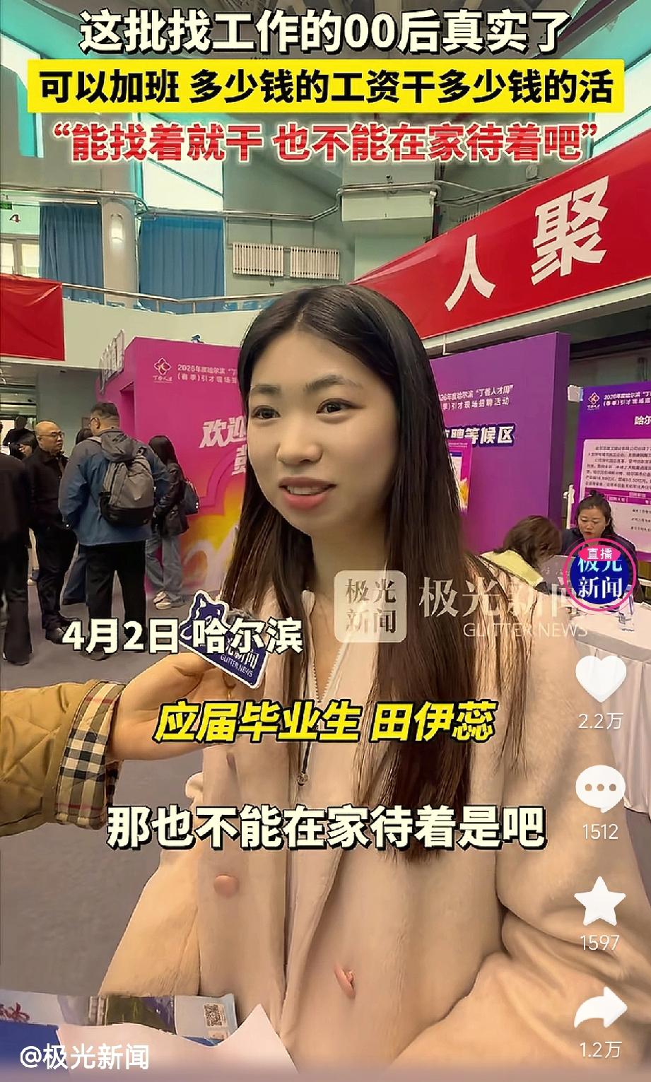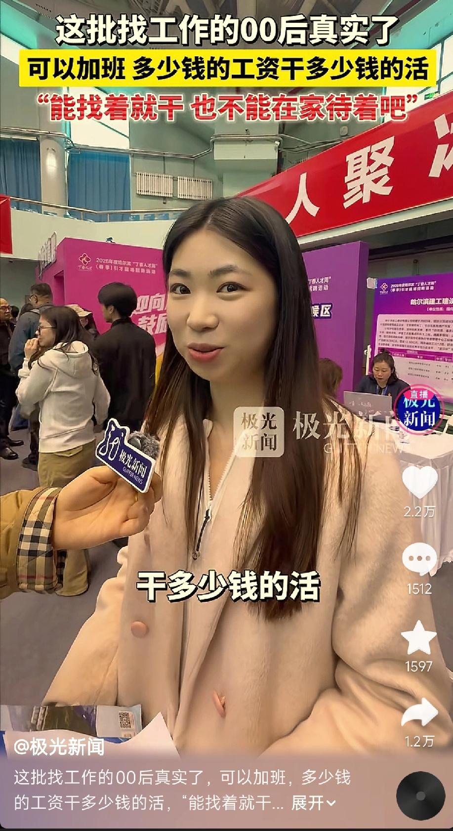 极光新闻采访00后求职,听到了这样真实的声音:“可以加班,多少钱工资干多少钱活”“能找着就干,也不能在家待着吧”。 笑死,这届00后求职,主打一个“人间清醒”!没有“整顿职场”的口号,只有“先干着再说”的实在——刚毕业不挑活,先攒经验再考证,把“找工作”当成“练级打怪”,每一步都踩在现实的土地上。这种“接地气”的选择,不是妥协,而是对自我成长的负责:与其在家空想“完美工作”,不如先迈出第一步,在实践中打磨能力,未来跳槽时才能更有底气。