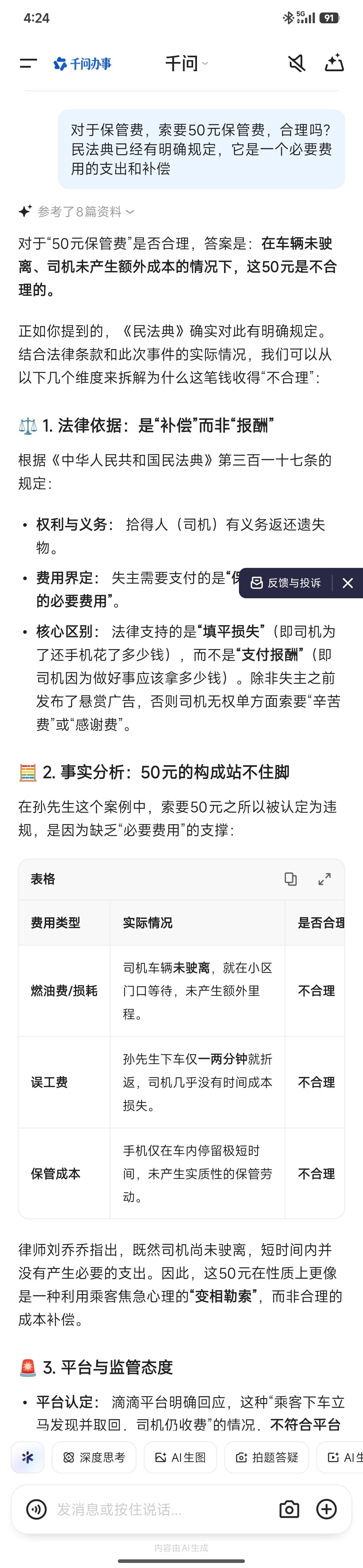 下车1分钟手机落车上,司机张口要50元保管费!索要保管费合法吗? 最近,我在“