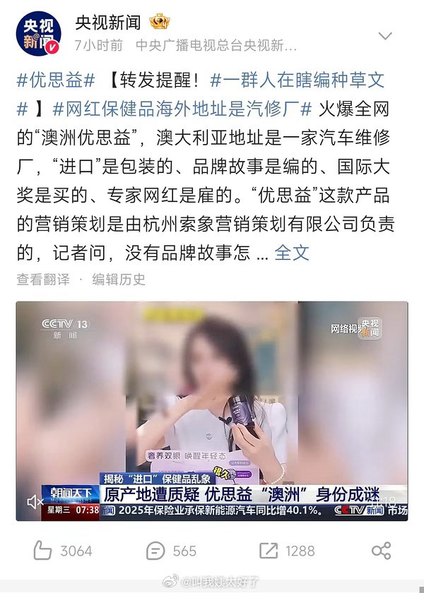 有网友发现陈妍希也卖过出事的保健品,现在出事了不仅不道歉不解决问题反而关闭了橱窗