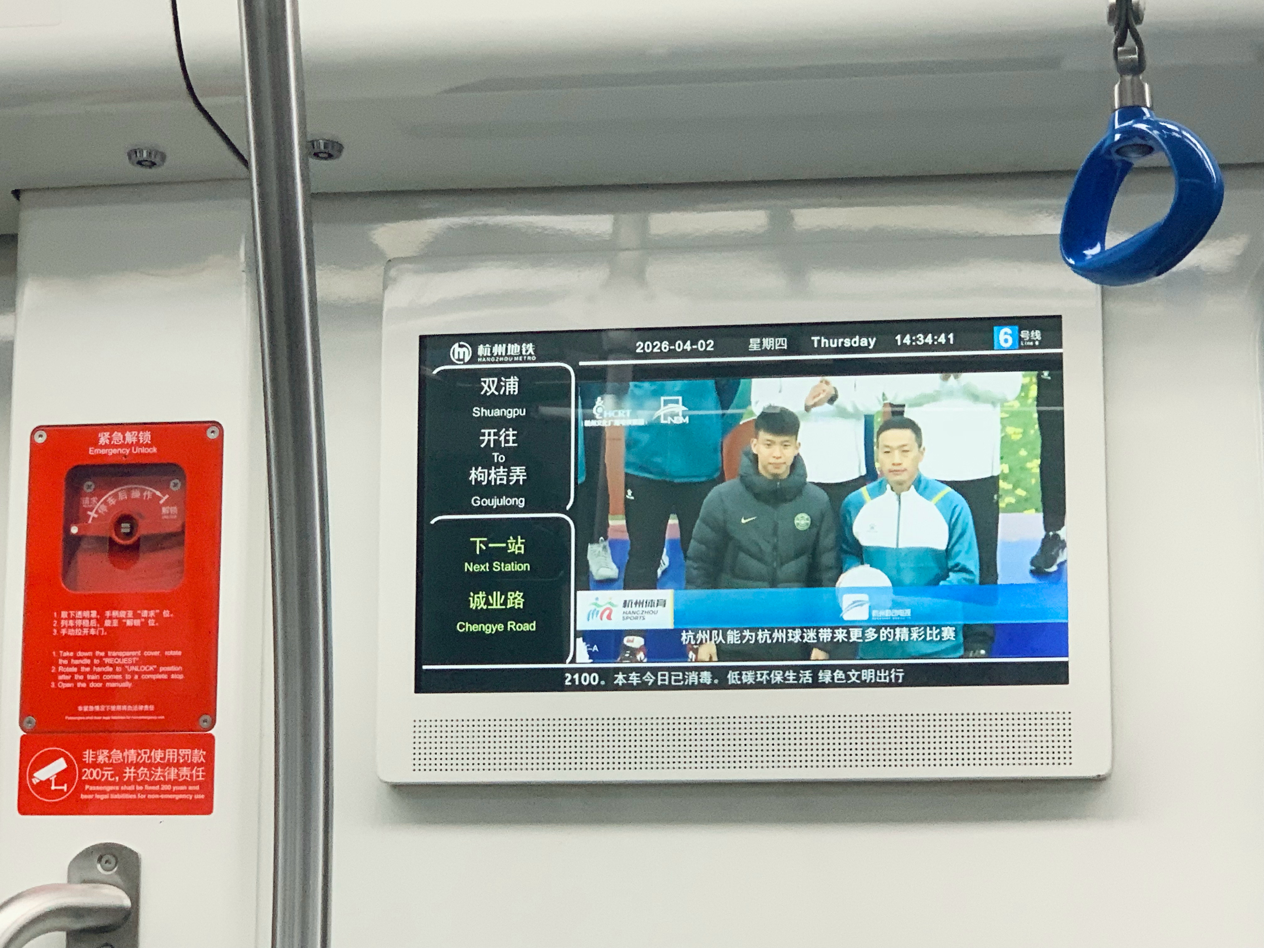 浙江奥运天团打call吴越杯在杭州地铁看到了浙超的宣传