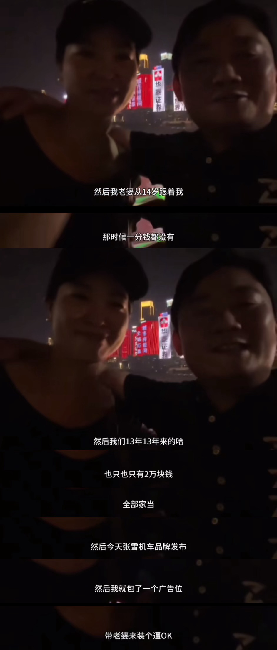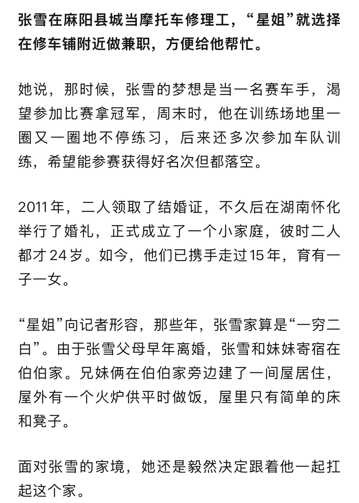 张雪和星姐14岁就在一起了,彼时两个人的生活非常艰难,最苦的时候要为20块的饭钱发愁。