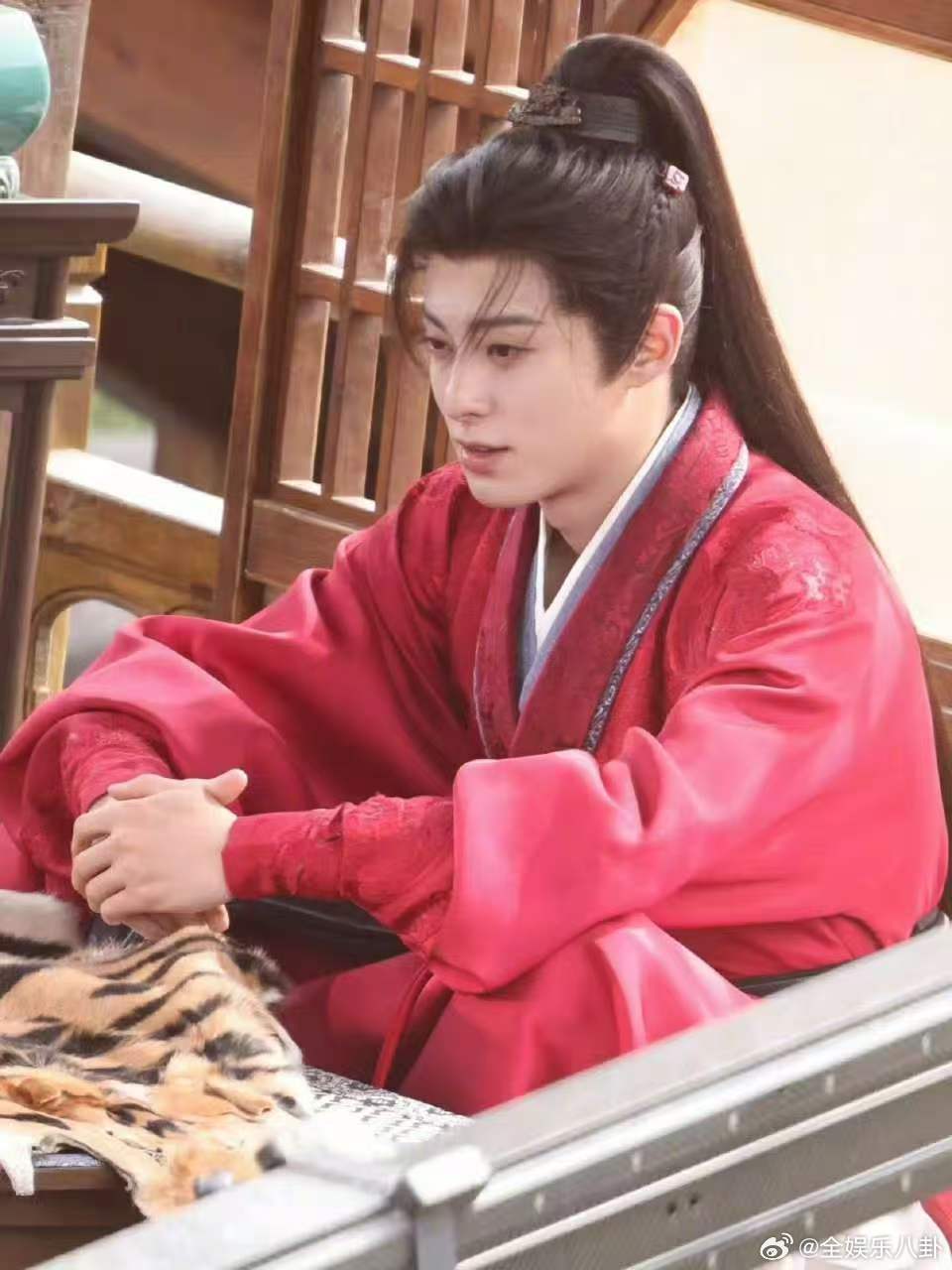 王鹤棣将门独后红衣高马尾造型王鹤棣谢景行红衣高马尾路透 王鹤棣《将门独后》谢景行