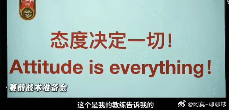 态度决定一切,这六个字代表了邵佳一带领的新国足!25年前,那时候世界杯亚洲区预选赛决赛阶段还叫“十强赛”。备战“十强赛”前后,时任国足主帅米卢被各种压力包围着——比赛前,记者会问他平局下不下课;转战西亚客场时,朋友会跟他抱怨酷热天气对球队的影响;回到高原主场昆明时,队员跟他吐槽“高海拔踢球害人害己”……面对这些叨扰,米卢十分不解的反问:"中国人为何总是消极的看待任何事情,为什么更愿意提一些破坏性而非建设性的意见?"“比赛还没开打,为什么不祝福国足取得一场漂亮的胜利?”“天气热?那你为什么不看看马斯喀特的海湾有多美,为什么不看看多哈的月色有多迷人?”“害怕高原?我带墨西哥跟阿根廷交手四次,不论高原平地,都是1-1。”米卢的每一个反问,总结概括起来就是一句话,一句曾经风靡中国大江南北的米氏鸡汤:“态度决定一切!”25年后,这句话再度出现在了一众国脚的面前。在国足对阵库拉索的赛前准备会上,现任中国男足主教练邵佳一将这句话打在了大屏幕上,他说:这是我的教练教给我的,我现在把同样的话也分享给你们!国足邵佳一中国足球