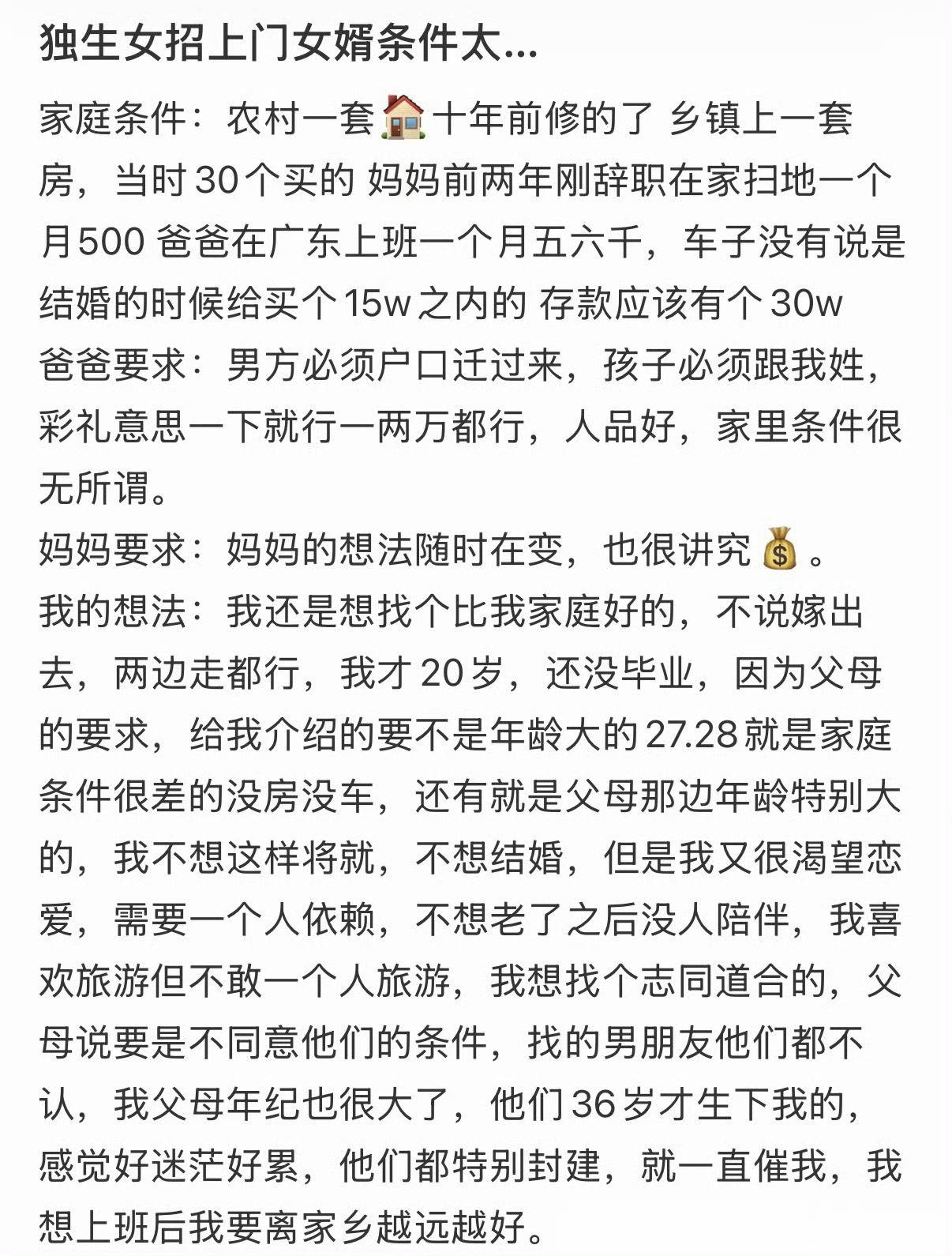 独生女招上门女婿,爸妈要求低,自己要求高怎么办?