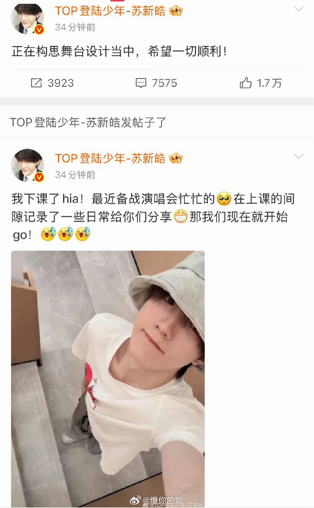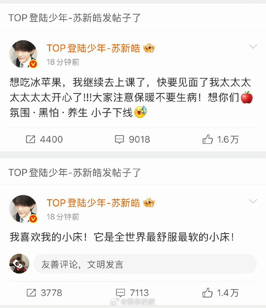 苏新皓泡脚预防感冒苏新皓在超话里唠嗑了一边泡脚养生防感冒,一边超话唠嗑宠粉,苏老