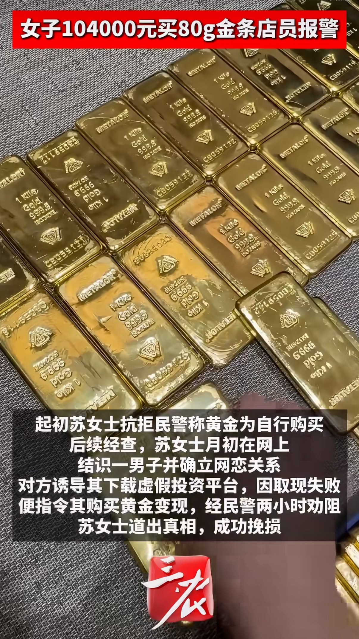 女子104000元买80g金条店员报警现在的骗子也“进化”了,不骗转账改骗金条?