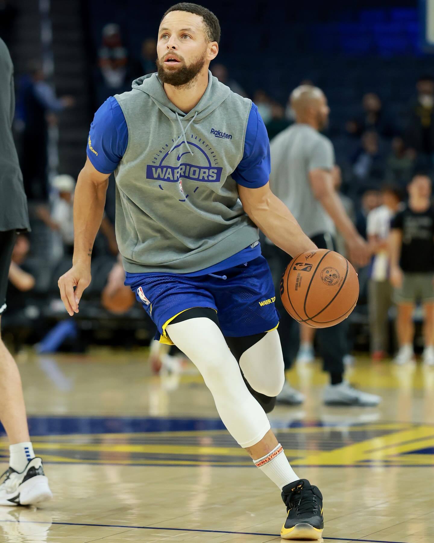 库里在赛前恢复训练中上脚了一双特别的鞋款——好友德雷蒙德·格林在 2017 年的