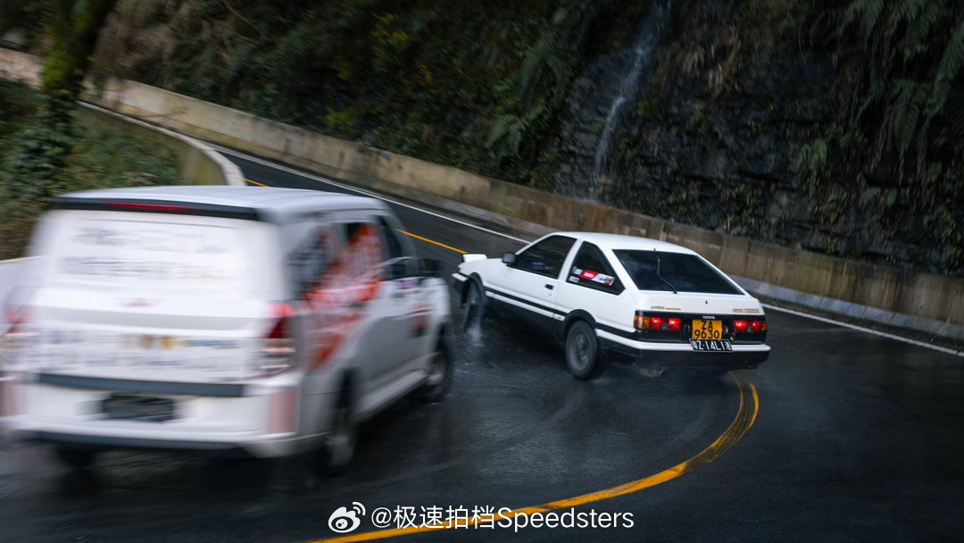 驾驶AE86与咬地鲨在山路漂移穿梭。AE86引擎轰鸣响彻山间,仿佛瞬间梦回《头文字D》,氛围感拉满!