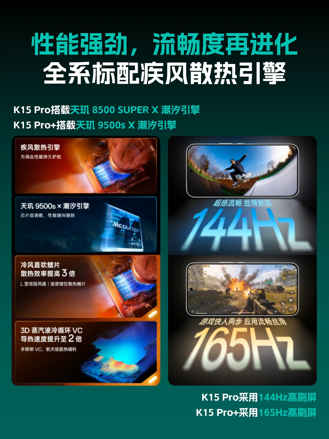 K15 Pro+配置更旗舰,天玑9500s芯片,6.78英寸1.5K屏+165Hz超高刷