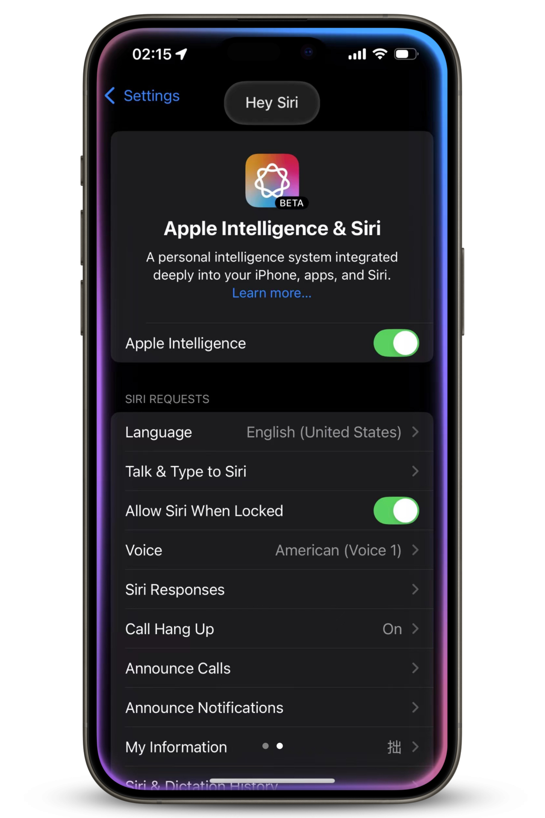 激活设置: 重启后,按照欢迎页指引,将语言设为英语(美国),地区设为美国。遇到Apple ID偏好设置时,选择 Customize,在Apps & Data页面务必选择 Don't Transfer Apps & Data。注意:激活时选择不要抹除数据。最终配置:进入系统后,确认系统语言、地区、Siri语言均为美国英语。登录美区Apple ID加入候补:打开Siri设置,会出现“Join Apple Intelligence Waitlist”的提示,点击加入,等待10-15分钟即可激活