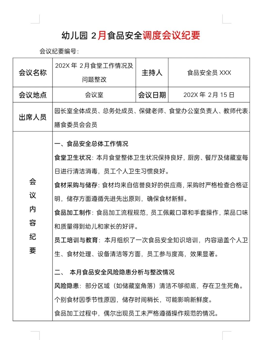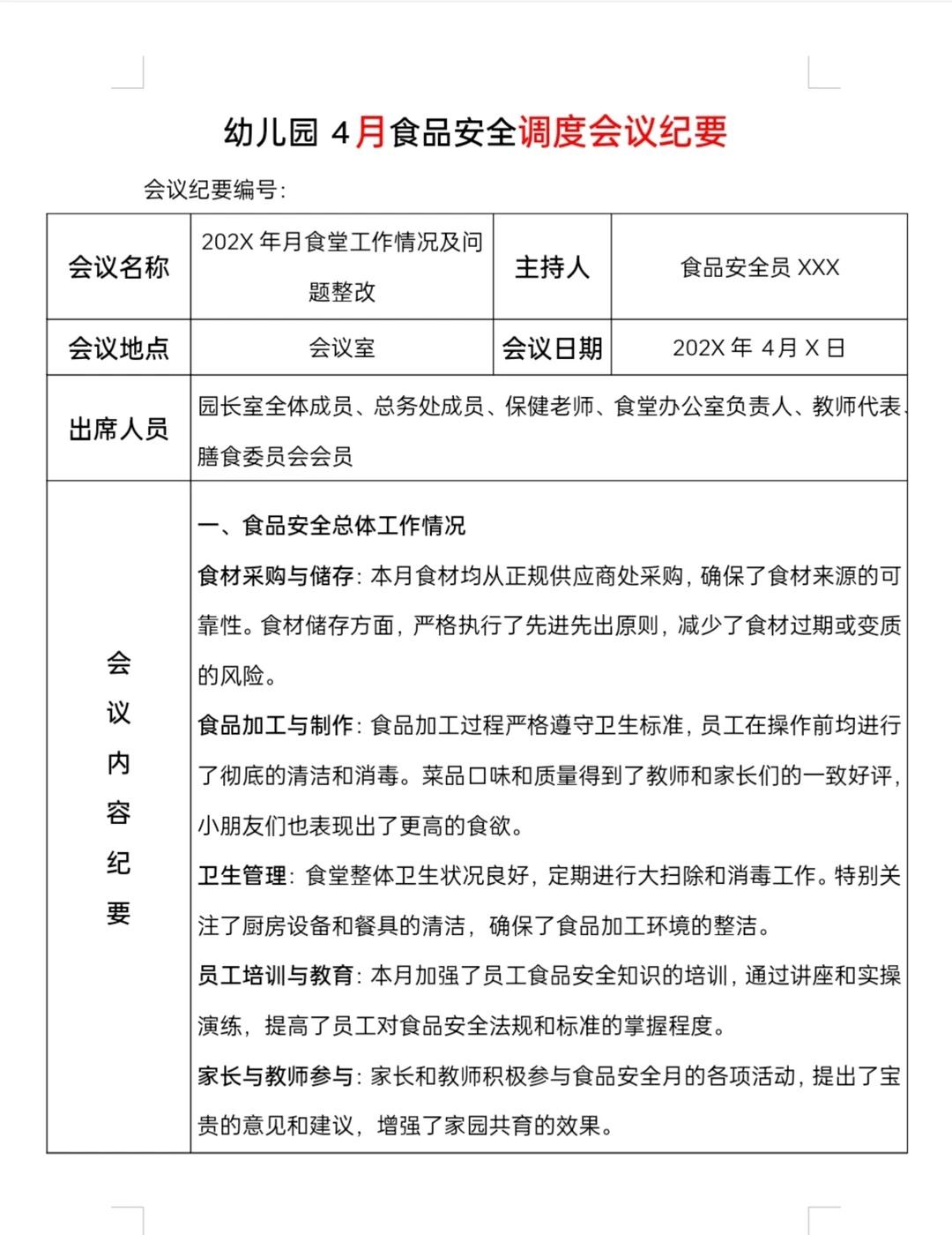 幼儿园2026食堂食品安全日管控周排查月调度 资源分享 幼教分享 幼儿园必备 幼师必备 幼儿园 幼儿园园长 食堂 食品 幼教资料 幼教
