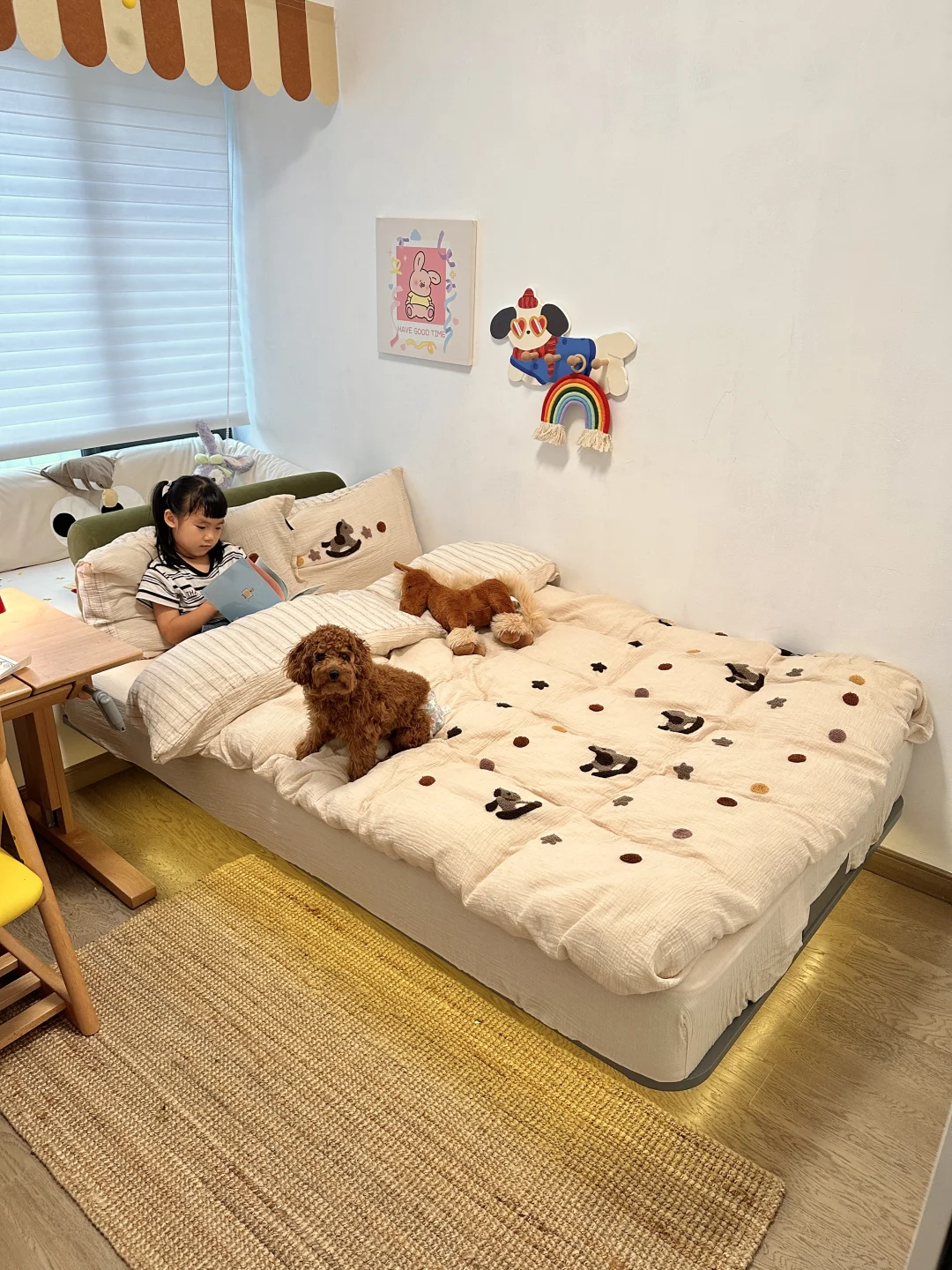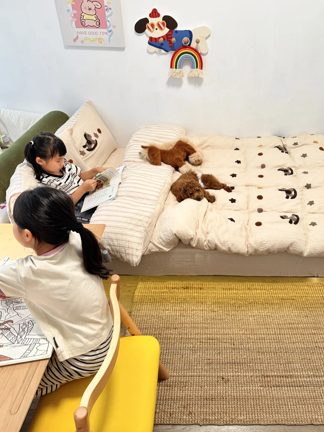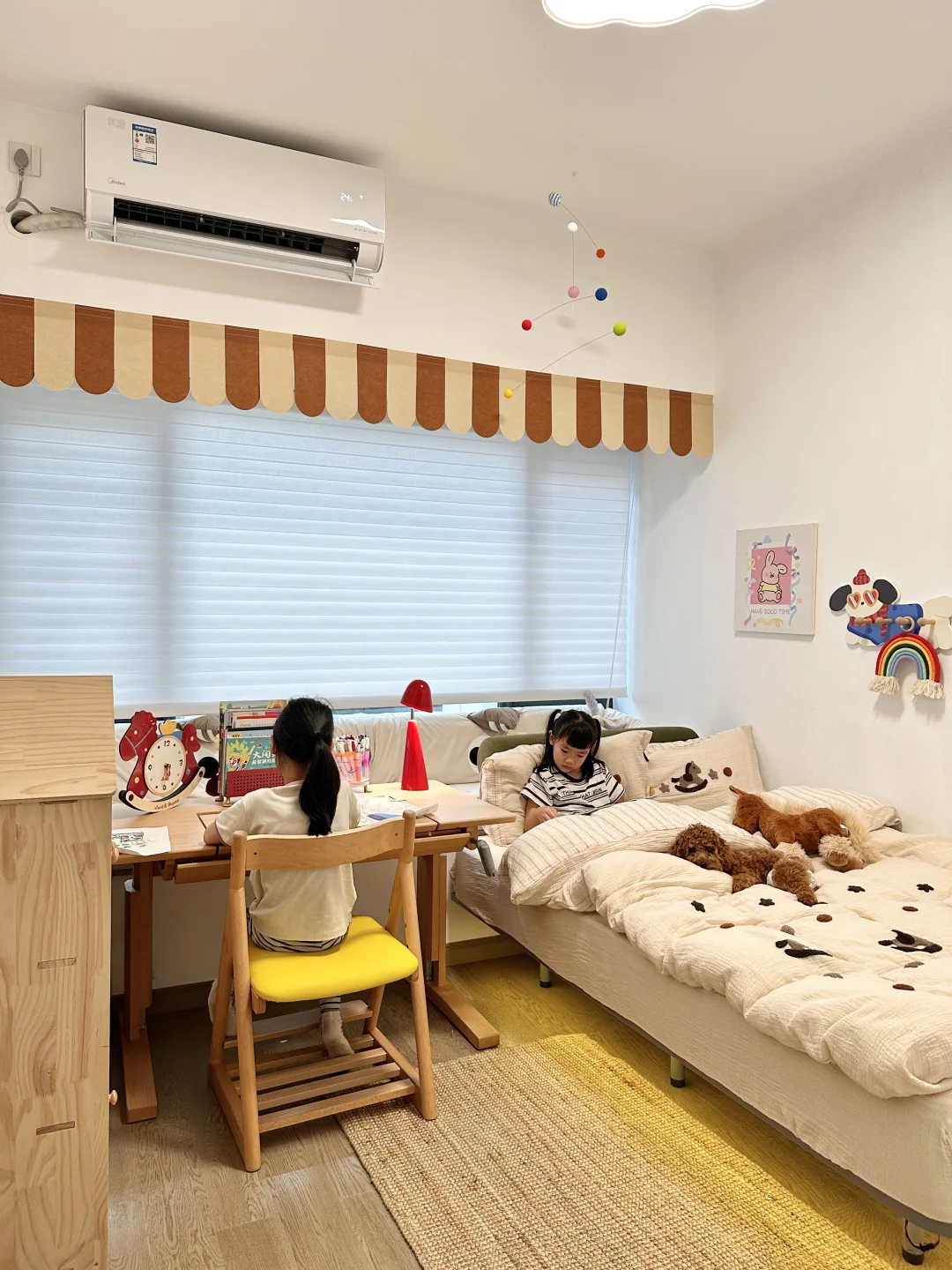 图一交房时的小房间🏠 图二布置后的儿童房🌈 不做一成不变的榻榻米房间 搭配成随着年龄可以变化的可爱儿童房 房间虽然小,但真的是多功能房间该有的都有 不拆不砸全靠软装布置成女儿们喜欢的样子 看着她们在这个充满童趣的儿童房里长大 心里满满的成就感和幸福感❤️