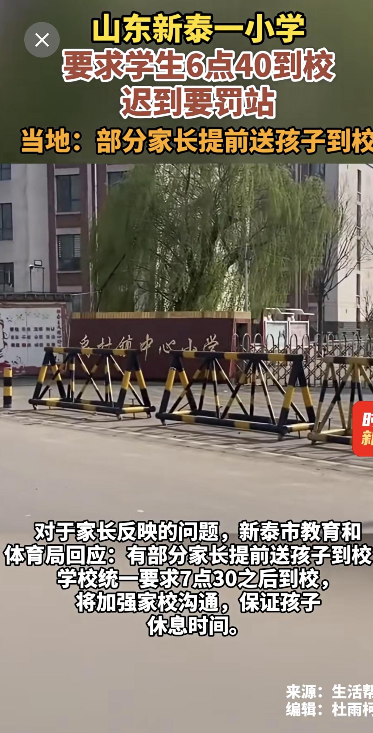 山东新泰一小学要求学生6点40到校,迟到要罚站,当地:部分家长提前送孩子到校