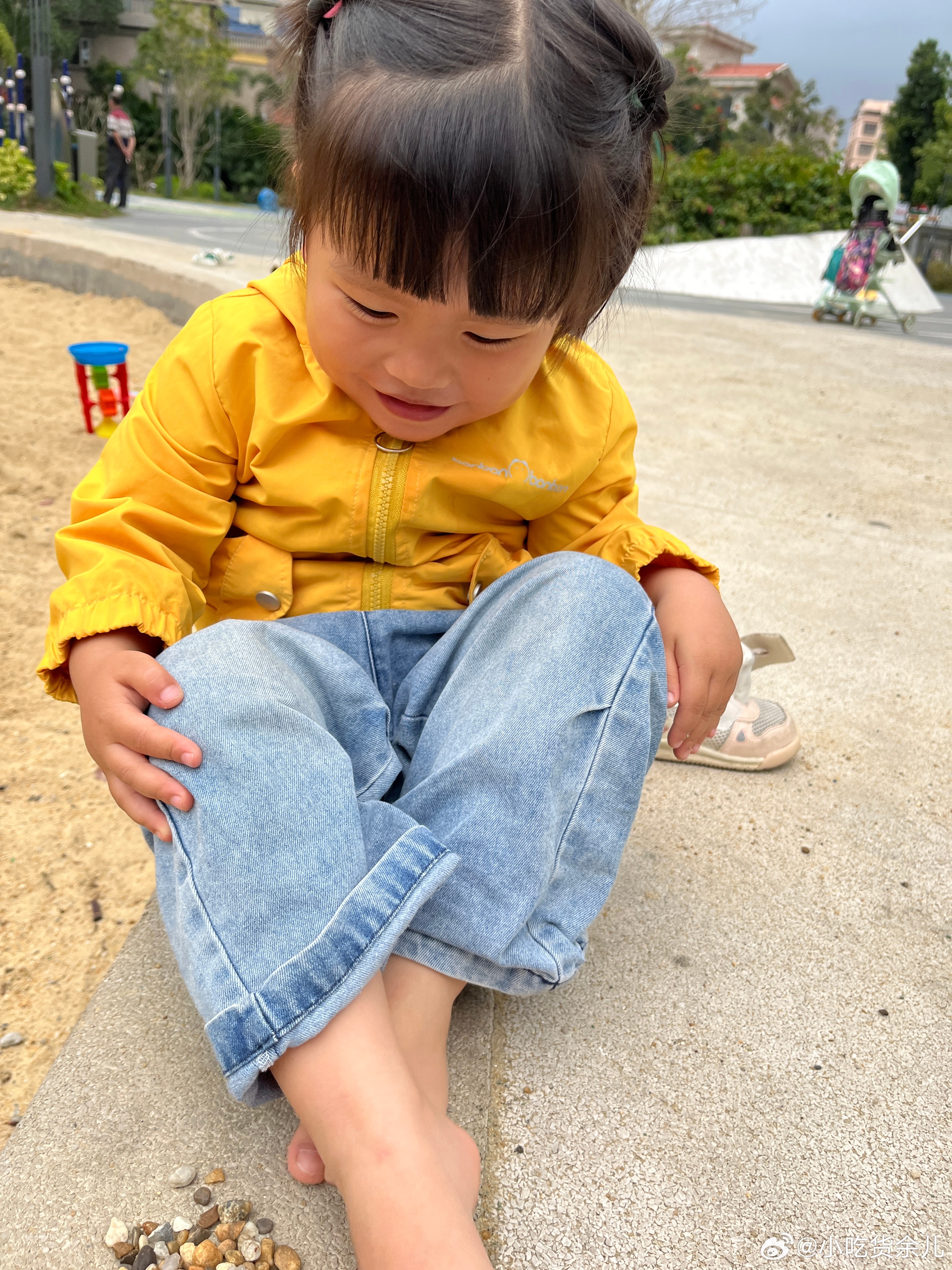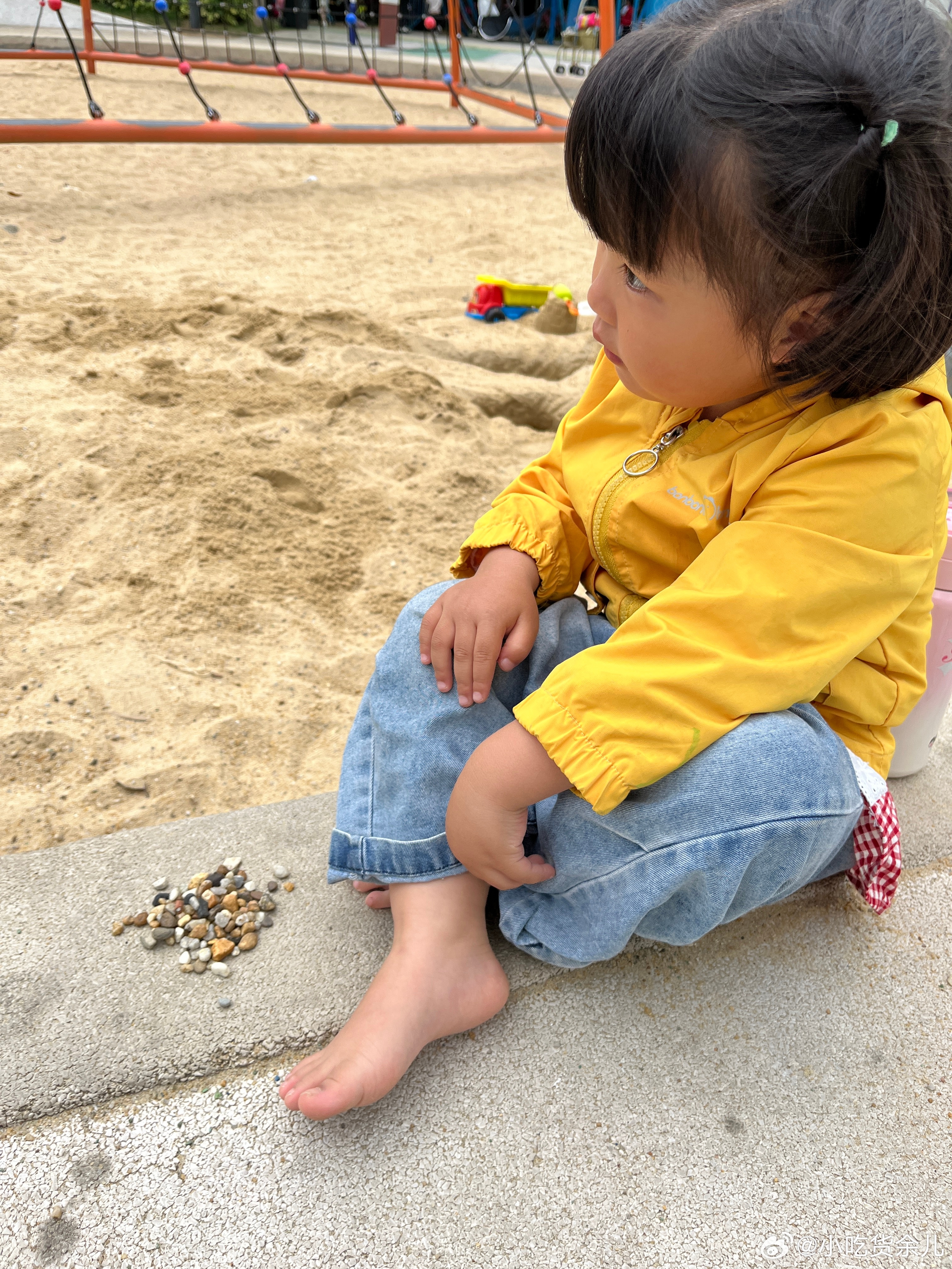 想下雨,又有点冷,柠宝还说要来公园玩。捡了一大堆石头,坐着,藏在脚底下,叫我猜猜