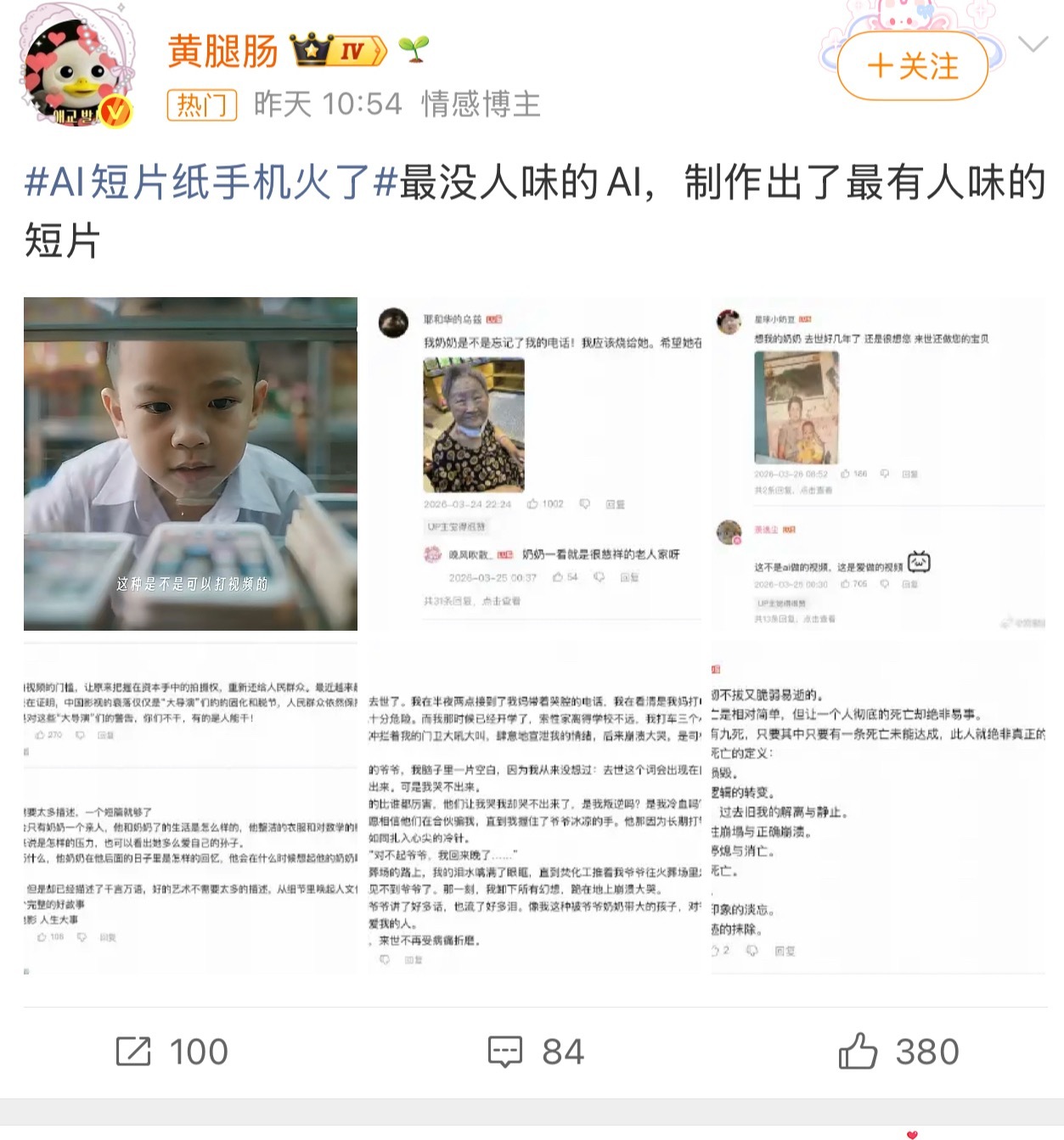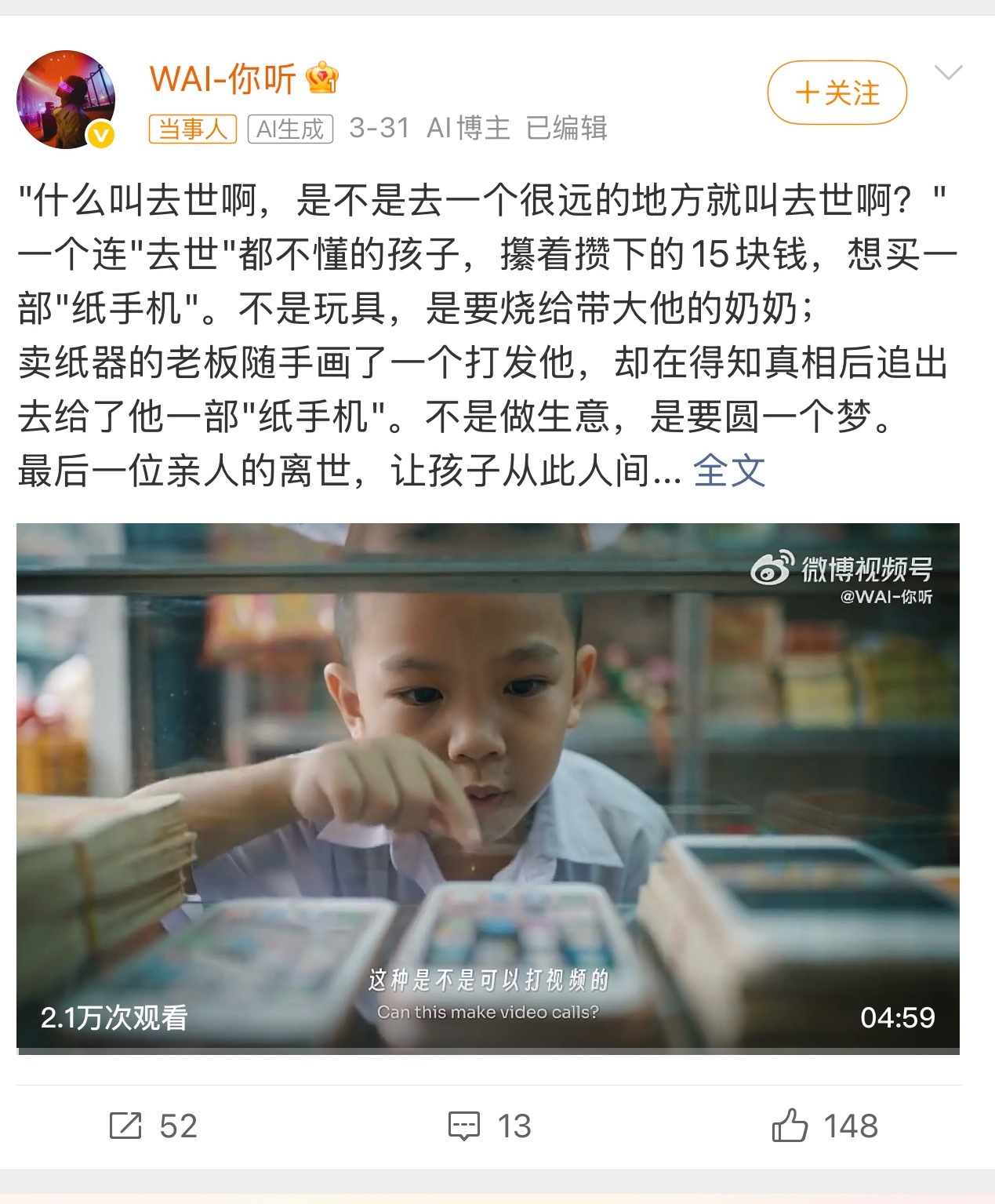 可灵AI回应清明短片纸手机爆火短片纸手机爆火能说明什么呢?说明只要内容好,大家还