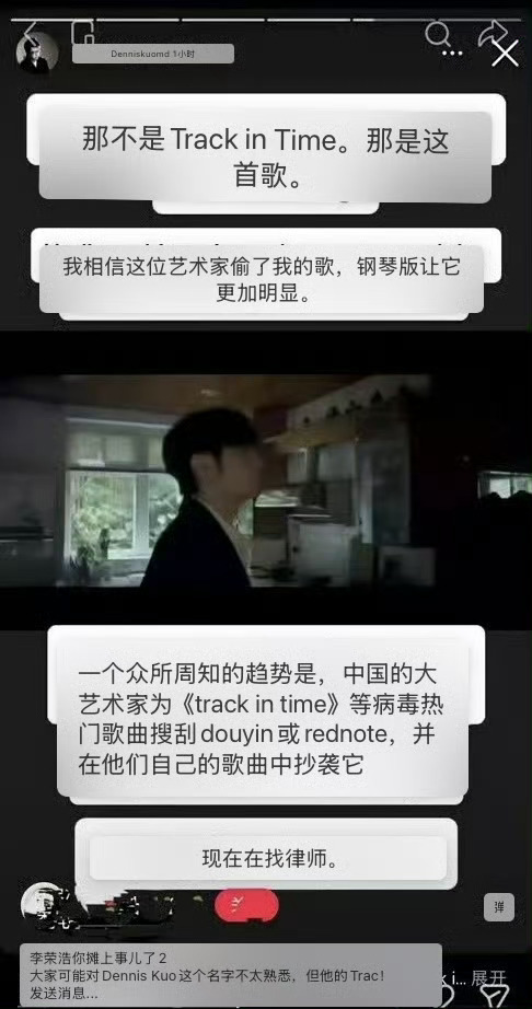 denniskuo指控李荣浩恋人编曲抄袭denniskuo发ig快拍指控李荣浩的《恋人》编曲抄袭他自己的《track in time》,正在诉诸法律途径,啥情况啊
