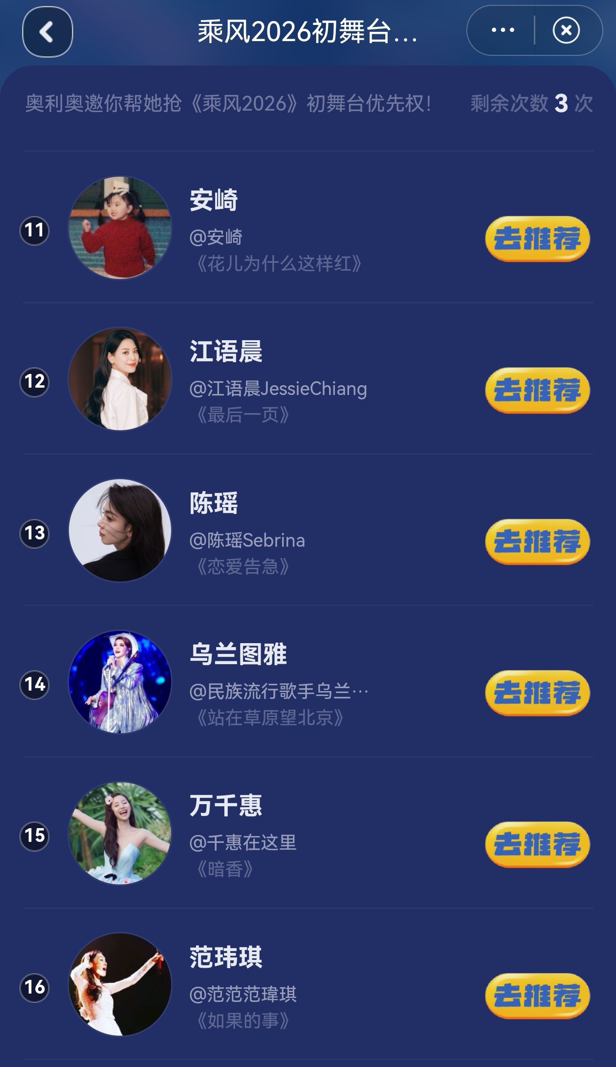 乘风2026初舞台pk 网传初舞台会是选手两两pk,还加入了线上投票环节决定,刚开始就要玩一波大的吗~那我可要全心蹲守直播了,从全程直播、全开麦、零修音的机制就已经把紧张的气氛拉到顶峰,不管怎么样,期待姐姐们在舞台上大放光彩,尽情的享受舞台就好啦~乘风2026