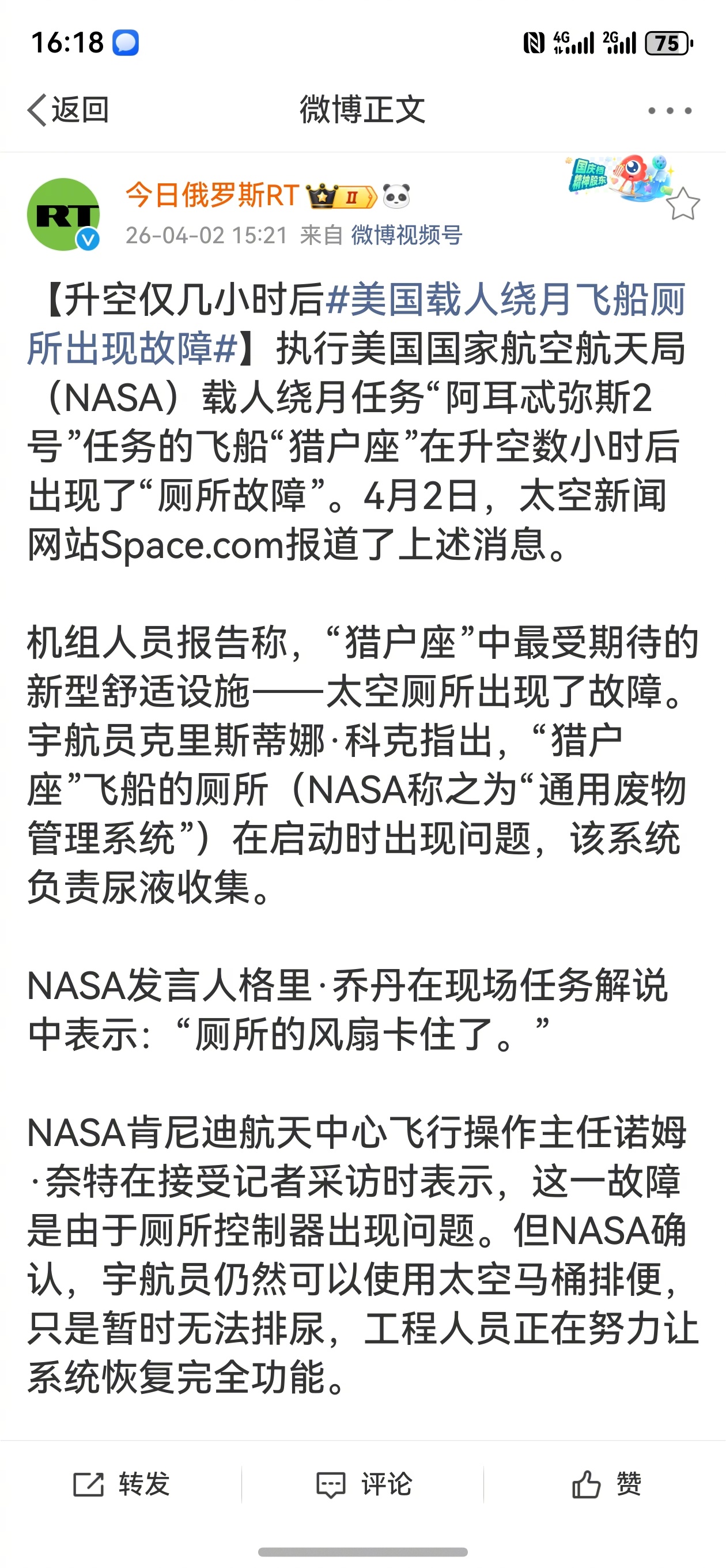 这四个人,可能根本就不在飞船上。一个最大的疑点是,猎户座飞船上的马桶已经坏了