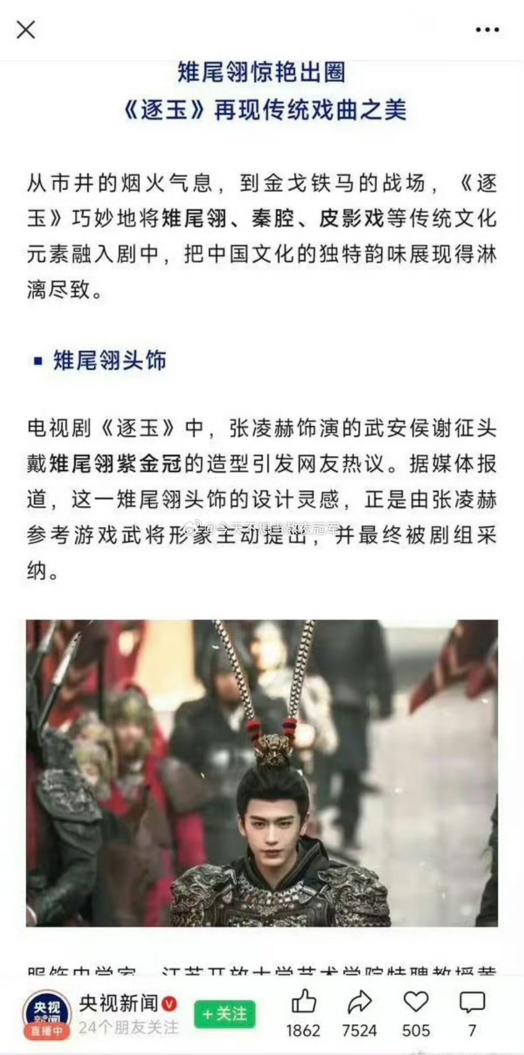 就因为戴了2次雉鸡翎,张凌赫新剧被军媒点名,造型师的回应,有点意思。一张剧照,妆