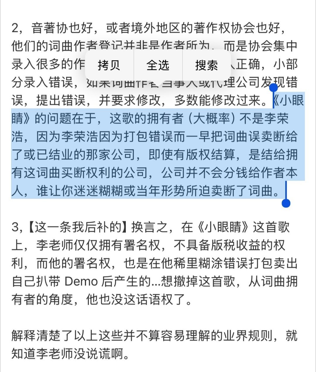 李荣浩肯定不是冲着《李白》的侵权,而和单依纯闹翻,在这一篇的千字长文中,李荣浩提