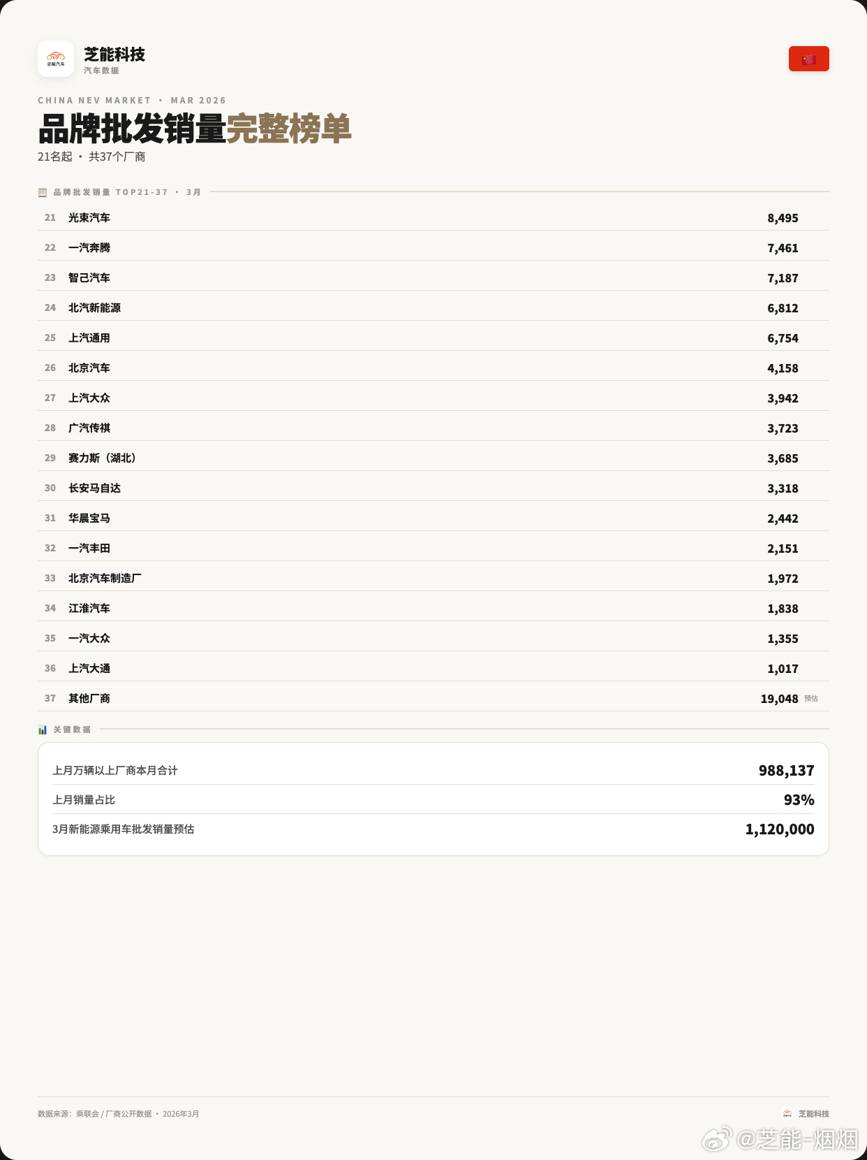 【更新:增加了赛力斯销量】新能源3月销量整理比亚迪:300,222台零跑汽车: