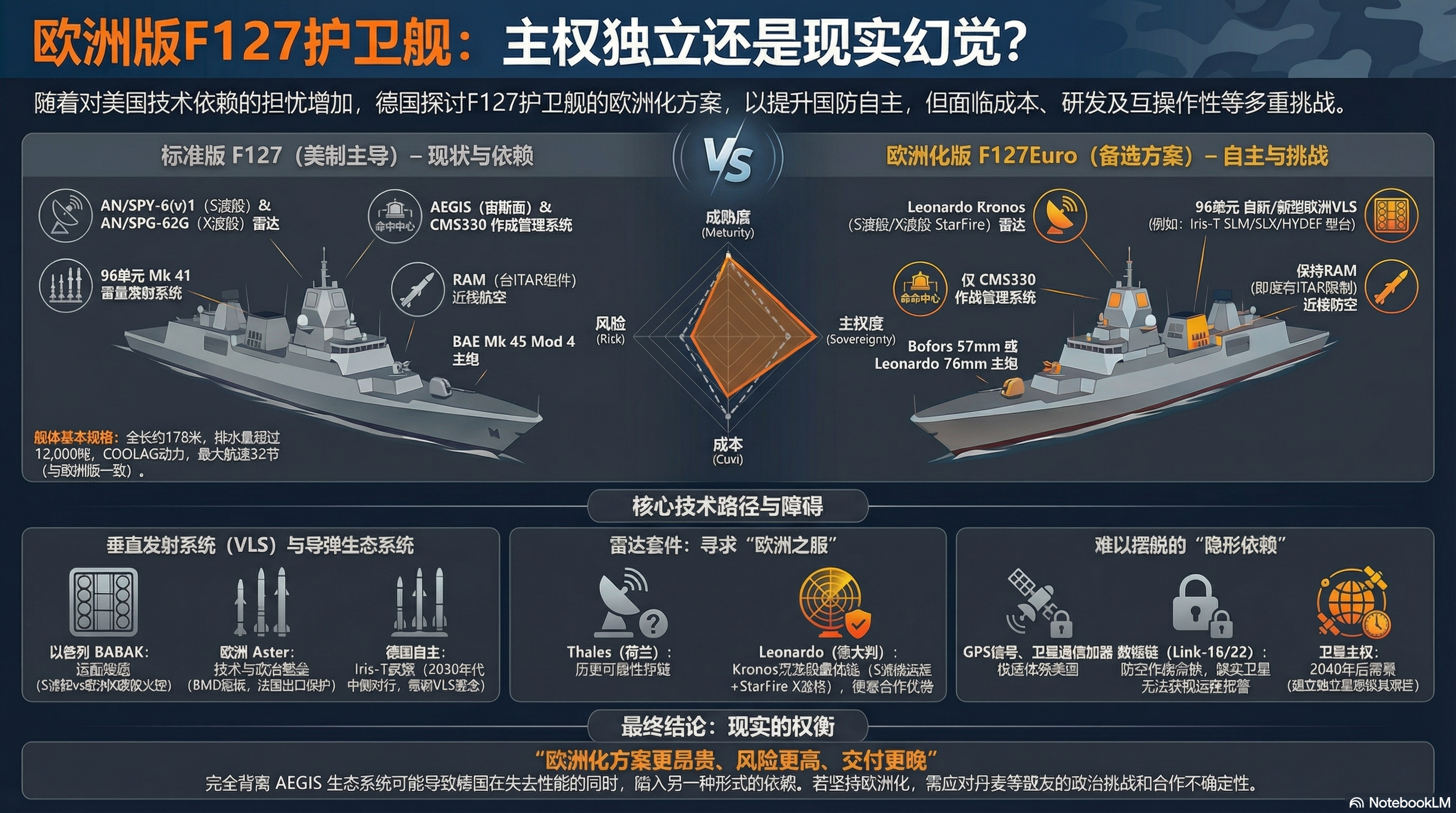 中外舰闻 军事ai新视野 每天认识一件兵器 两款🆓AI对同一篇文章(Armchair General的“欧洲版F-127导弹护卫舰”,传送门👉网页链接)的解读,在Infographic生成和对德语🇩🇪(第三国语言)文章阅读理解方面,仍然存在明显差距。