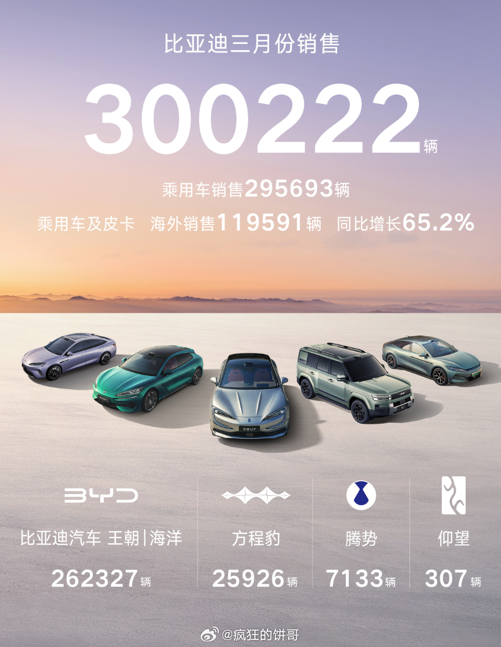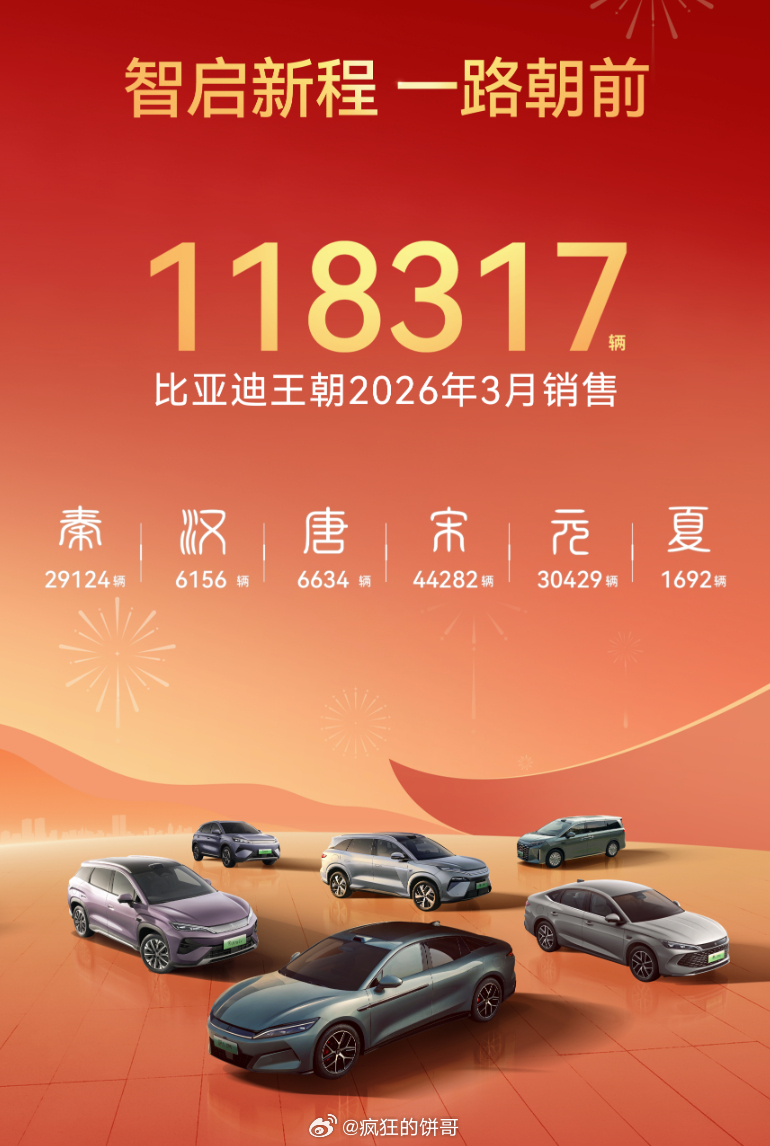 比亚迪销量 3月份销量300222辆,中国车企销量冠军,单月海外卖出去快12万辆