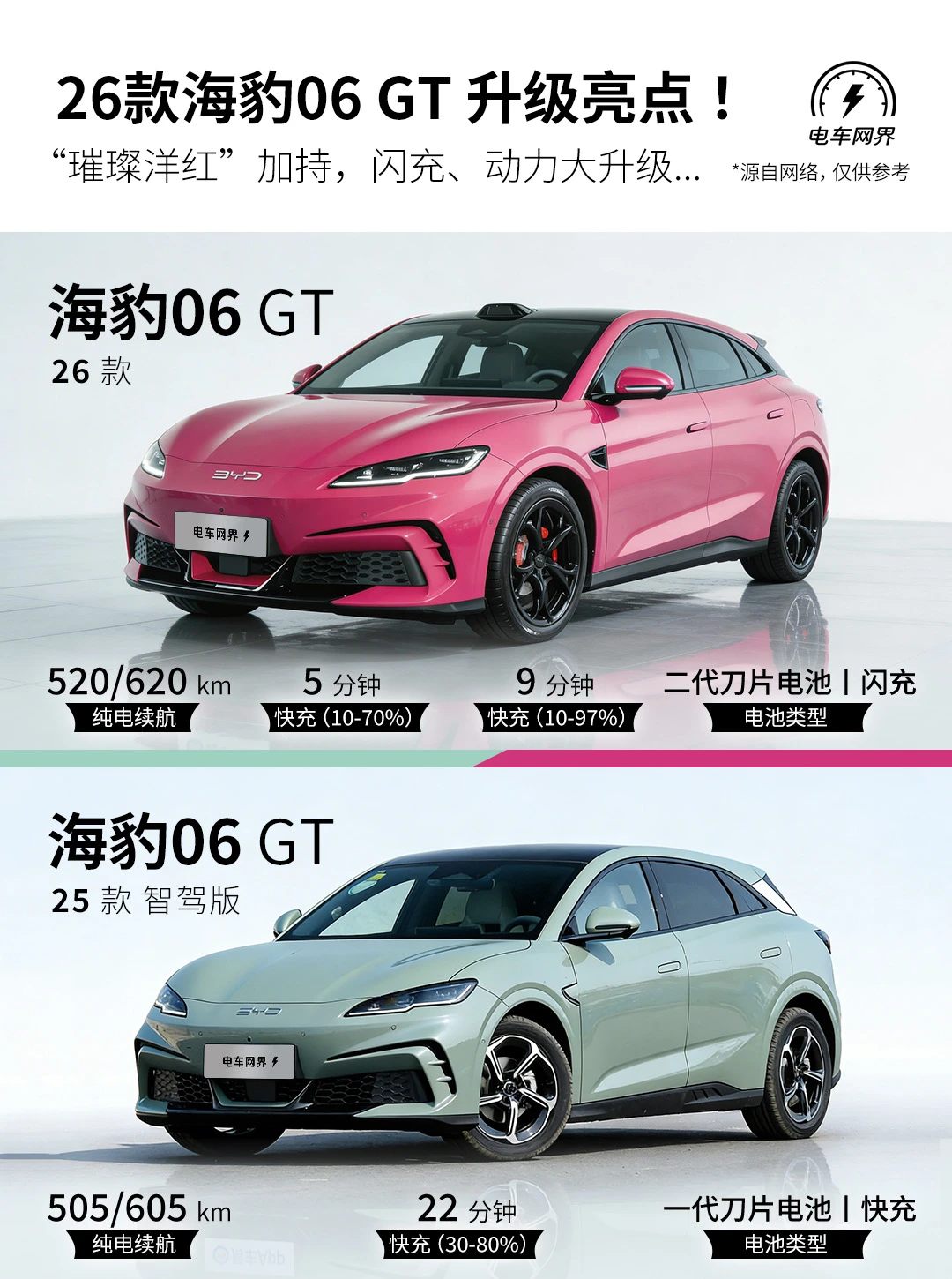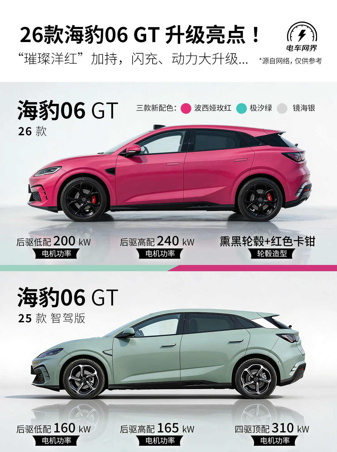这次有了“璀璨洋红”+闪充实力加持的26款海豹06GT,是不是更讨女车主欢心了?
