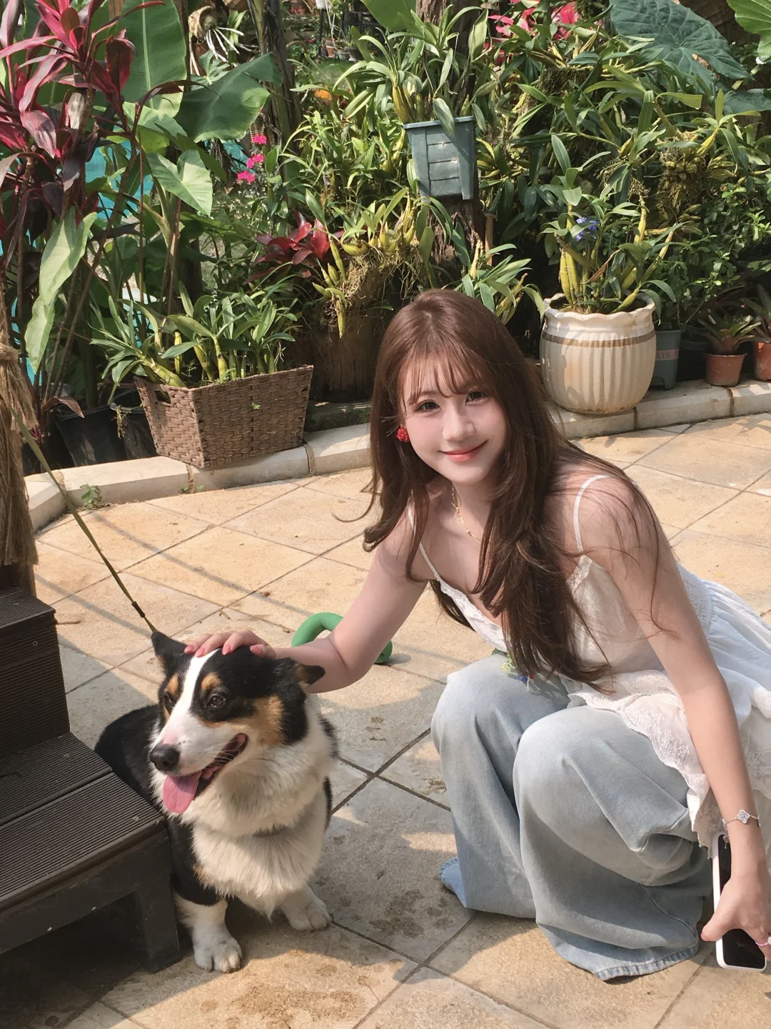 版纳的婉泰小木屋咖啡厅 门口遇到一只小柯基超可爱~很配合合照
