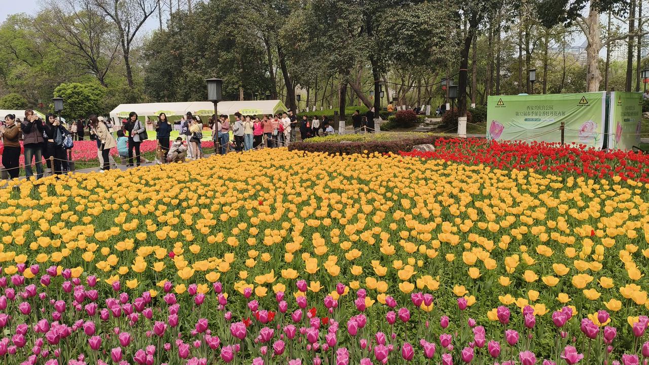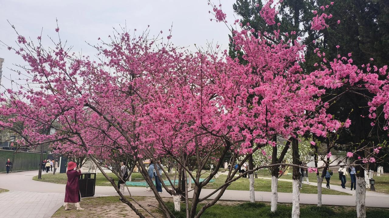 大唐春色—小试牛刀 四月初的兴庆宫公园,春花烂漫,游人如织。新手机小米小试牛刀。 兴庆宫建于盛唐开元时期,位于唐长安城东南部,因在兴庆坊内而得名与太极宫,大明宫并称"唐三大宫"在当时以豪华绚丽。花团锦簇而见长兴庆宫占地约两千多亩,是玄宗理政和皇家游宴的宫苑,接待过多国使臣,也曾演绎过李隆基,杨贵妃的悲欢爱情古事。"安史之乱"后随着唐王朝的哀落兴庆宫从此滞蔽成为文人凭吊契宴。之地,直至明末毁坏殆尽。 一九五八年西安市人民政府在遗址上建立了保护性公园兴庆宫公园现有面积约八百亩,林木郁,碧波荡漾,山石层登,亭台楼阁林立,风景秀丽,主要建筑有沉香亭,花萼相辉楼 南薰阁(殿)长庆轩以及勤政务本楼遗址,日本谴唐使阿倍仲麻侣纪念碑等,为国内外宾客游览胜地。