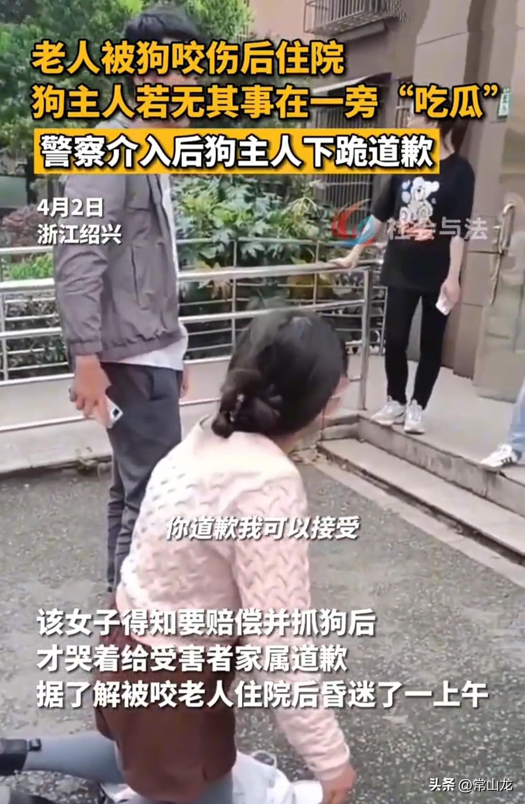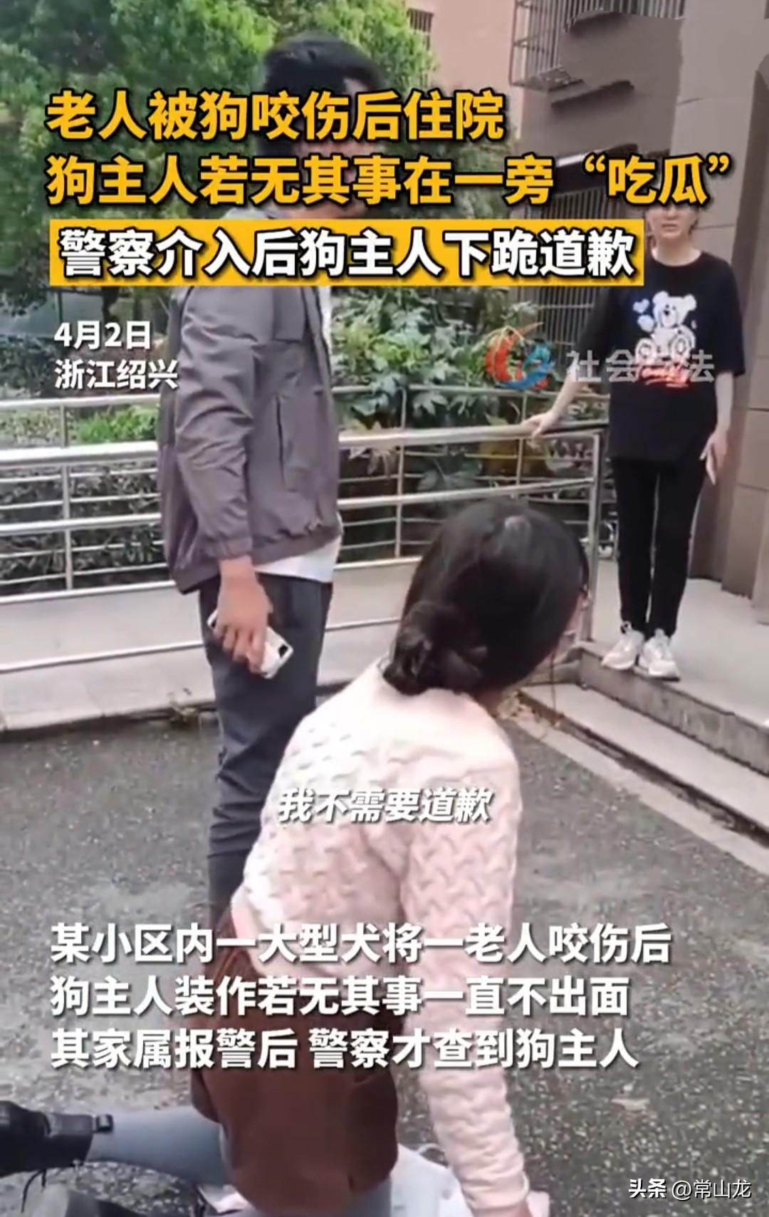 女子饲养的大型犬将老人扑倒咬伤后,女子居然若无其事地带着狗狗离开,既不察看老人被咬伤情,也不说咬伤后的治疗赔偿事项,就像跟自己毫无关系似的。 老人当即被送往医院治疗,在医院老人情况不好,一直处于昏迷状态。 老人家属愤而报警,警方找到女子,得知自己要承担民事责任,并且狗狗也要被处理掉时,女子才觉得麻烦大了。 她找到受害者家属,痛哭流涕地跪着道歉。 对于这声迟来的道歉,受害者家属不接受:“你现在不用给我道歉了,我不需要。” 女子哭哭啼啼:“我想跟你道歉,对不起。” 家属气不打一处来:“你第一时间道歉我可以接受,但是你现在才来,没用,从早上8:45到现在,老人一直在医院昏迷,你现在才来道歉,迟了。” “我没有跑。” “我没有说你跑,但是你应该积极地处理这个问题。” 遛狗不拴绳,不管控好,咬伤人不闻不问,警察找上门才知道错,迟了。 她不是知道自己错了,而是知道狗狗要被处死,自己还要承担赔偿责任时,她才慌了。 这才来到家属面前,哭哭啼啼地演这一出,想道德绑架呀。 还铺件衣服在地上,怕把裤子弄脏,真心道歉还在意这个,这演技确实杠杠的。 现在新规出来了,狗狗咬人狗主人不但要赔偿,还要被行政拘留。 坚决不接受道歉,她要真心悔过的话,除了赔偿老人的医药费,还要亲自动手把狗狗打死,再熬一碗狗肉汤去慰问老人。