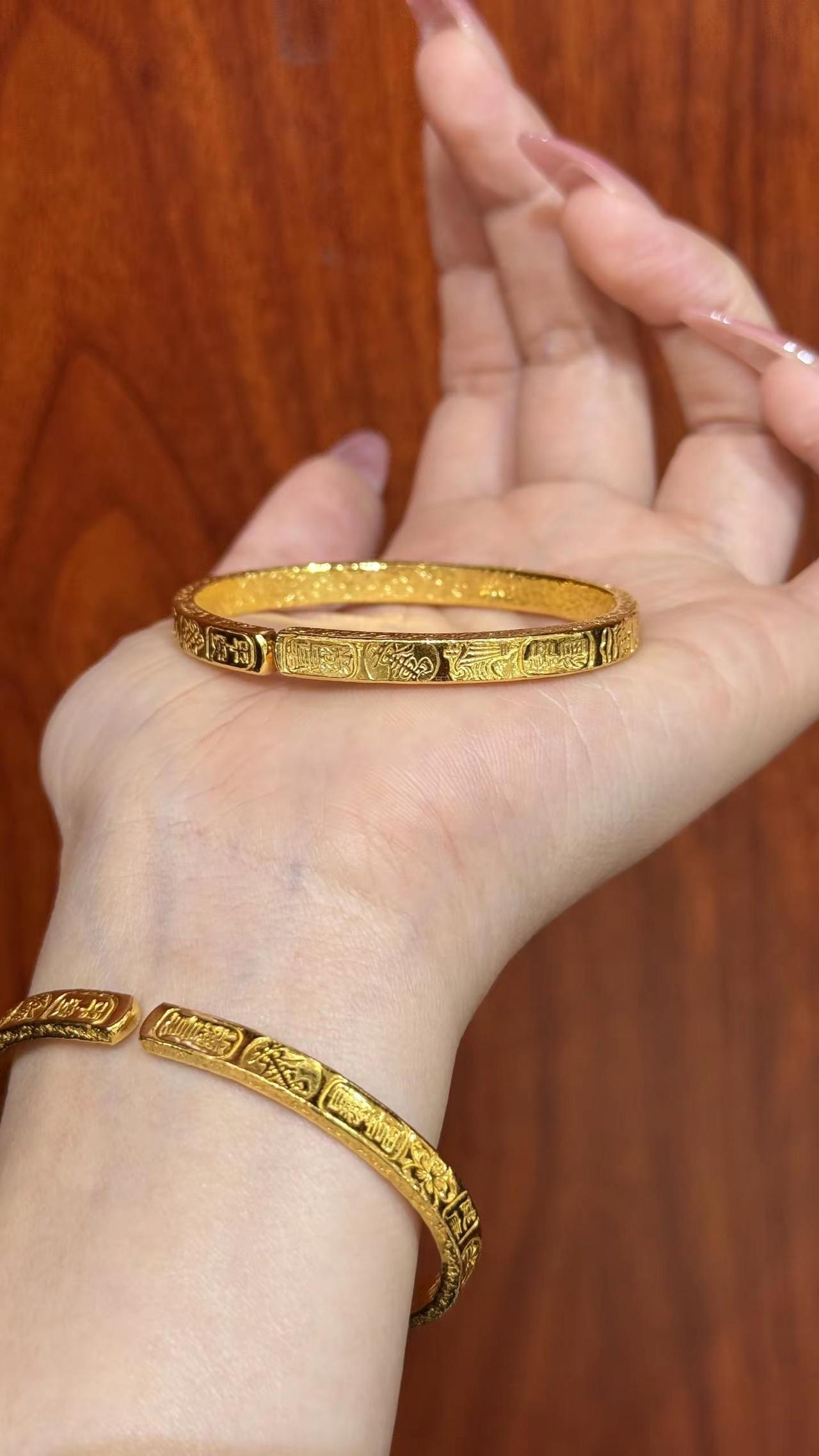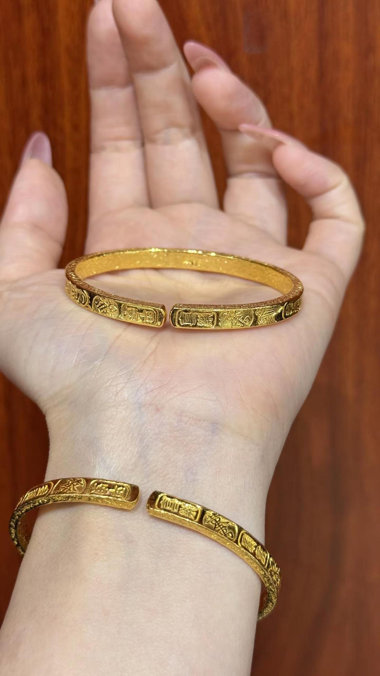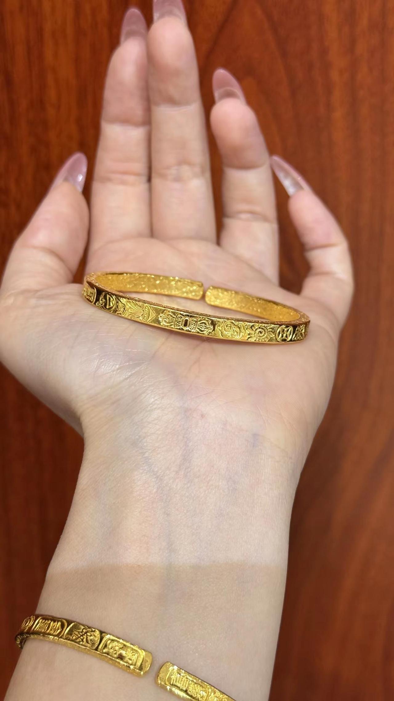 吉言金开口手镯35克。都说黄金"买时心痛,戴时心动",特别是大克重黄金手镯,既是手腕上独特迷人的一道风景又是能够传家的底气!晒晒手上戴什么 吉言手镯 吉言金手镯