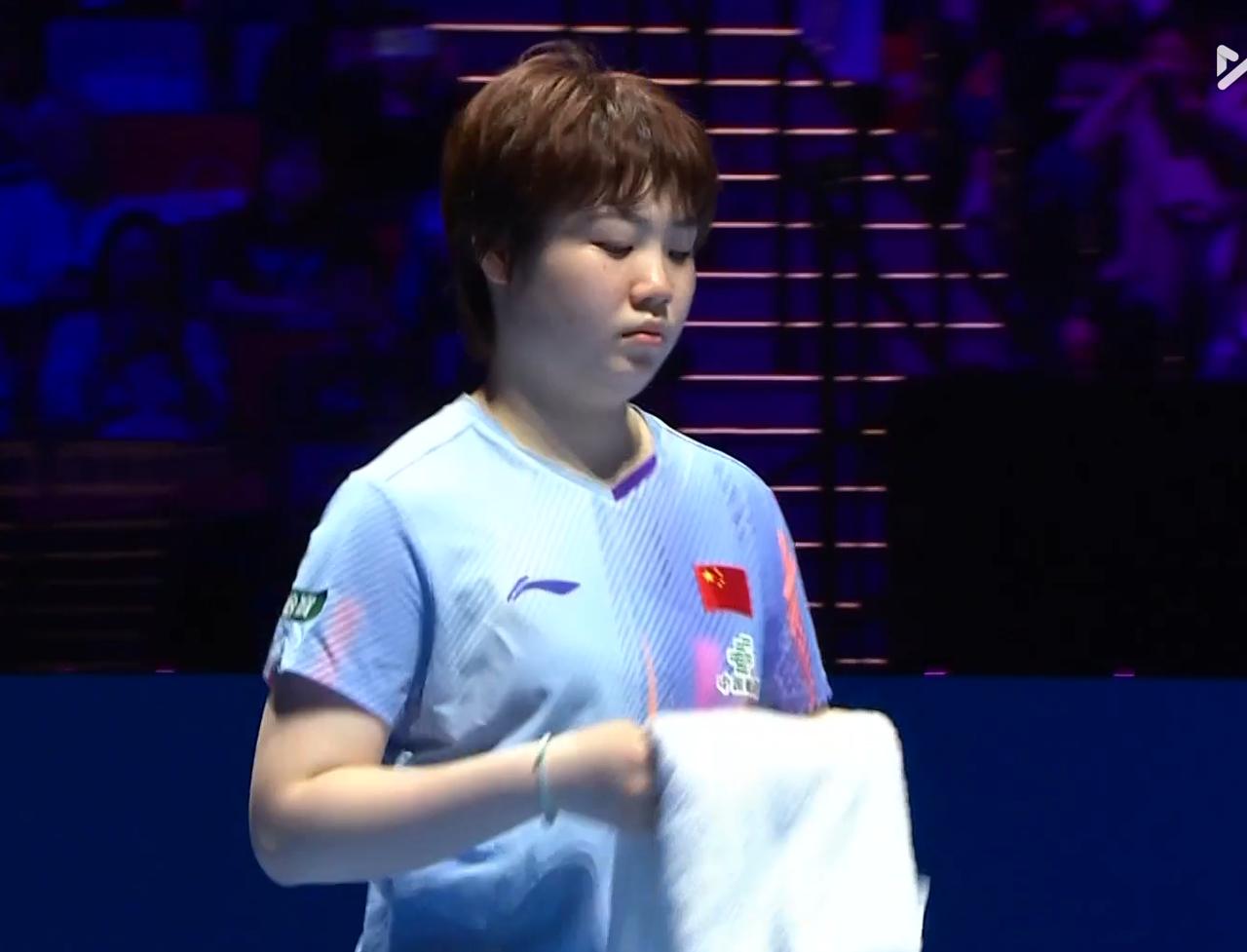 突发!孙颖莎打完第四局,突然走出赛场。 我看现场人留言说: 莎莎去换衣服了! 周泽昊也解释说: 前两天我刚去澳门, 这个季节, 澳门非常潮湿。 前四局 两人打成了2:2平, 第五局 蒯曼通过大角度调球, 3:1领先, 不过孙颖莎不甘示弱, 立马追到了3:3平。 随后两人又是胶着, 后半局孙颖莎发挥出色, 10:6拿到局点, 11:6拿下。