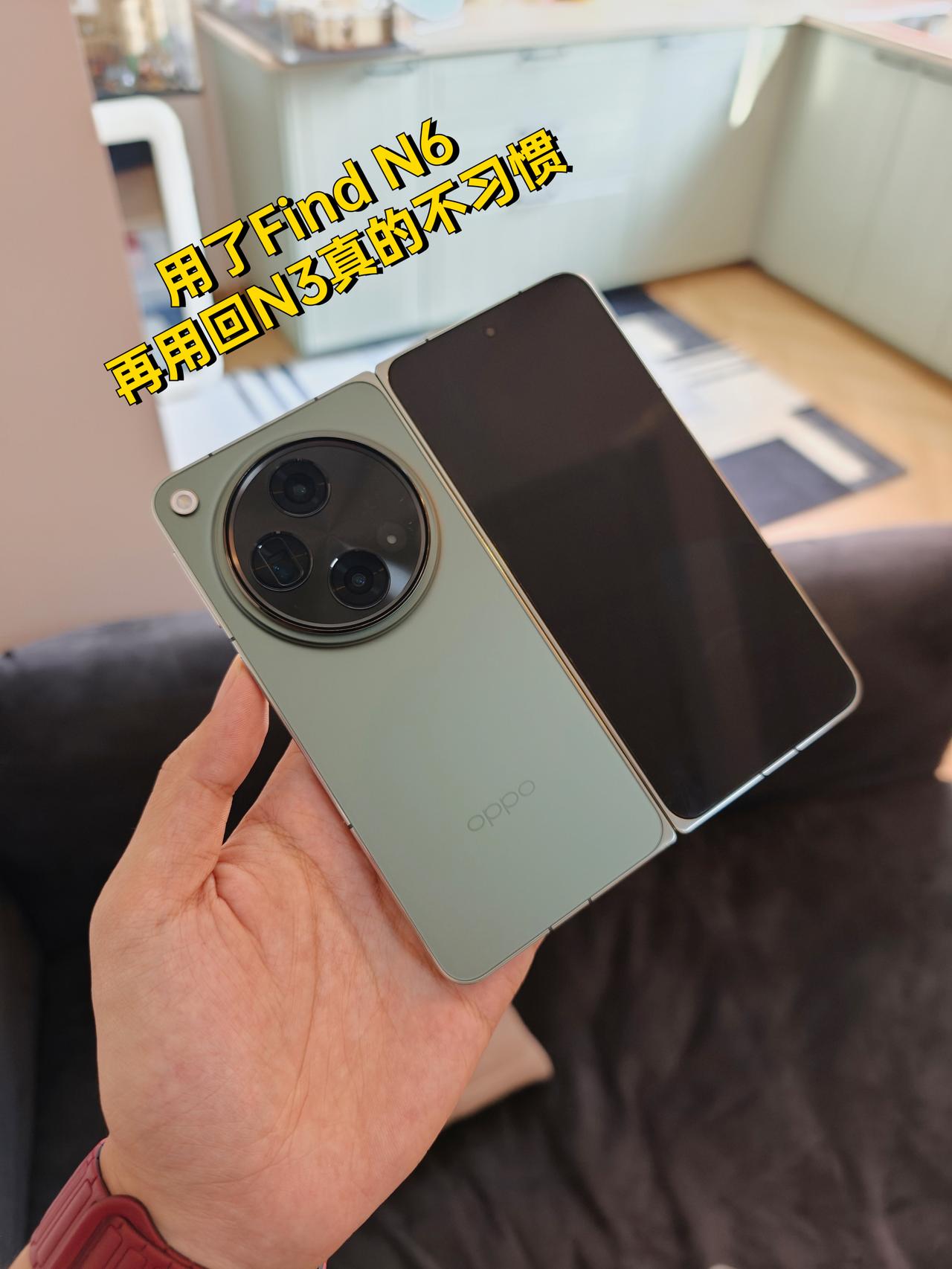 Find N3换成N6了,必须喷两句! 手上的Find N3已经用了两年多了,其实我平时对屏幕折痕并不会特别去关注,所以就一直用着! 但是前不久换成了Find N6后,发现再也没法用回N3了,因为Find N6的折痕亮屏状态下刷图文、看视频基本上看不到,息屏侧着光仔细找,还是能看到一点点微小起伏,但那个角度根本不是正常用手机的角度。 而且用了小半个月了,频繁开合也并没有让折痕加深,现在就导致我用N3的时候完全没法忽略折痕了,怪OPPO! 拍照感觉也有很大升级,哈苏2亿四摄加丹霞色彩还原镜头,拍人像肤色自然,扫街色彩还原很准,不需要后期再调色温,日常出片很省心。 之前用N3偶尔会担心下午没电,但是OPPO Find N6,这件事我现在完全不想了,基本上一天一充完全够用。 ColorOS 16的多窗体验比N3时代顺很多,全景自由窗可以同时开四个应用窗口,实际用下来分屏切换没有卡顿感。这是系统层面真的在跟着硬件走。 目前升级换手机,感觉还是相当不错的,如果是之前用N2或者跟我一样用N3的朋友,我觉得Find N6还是很值得升级的。