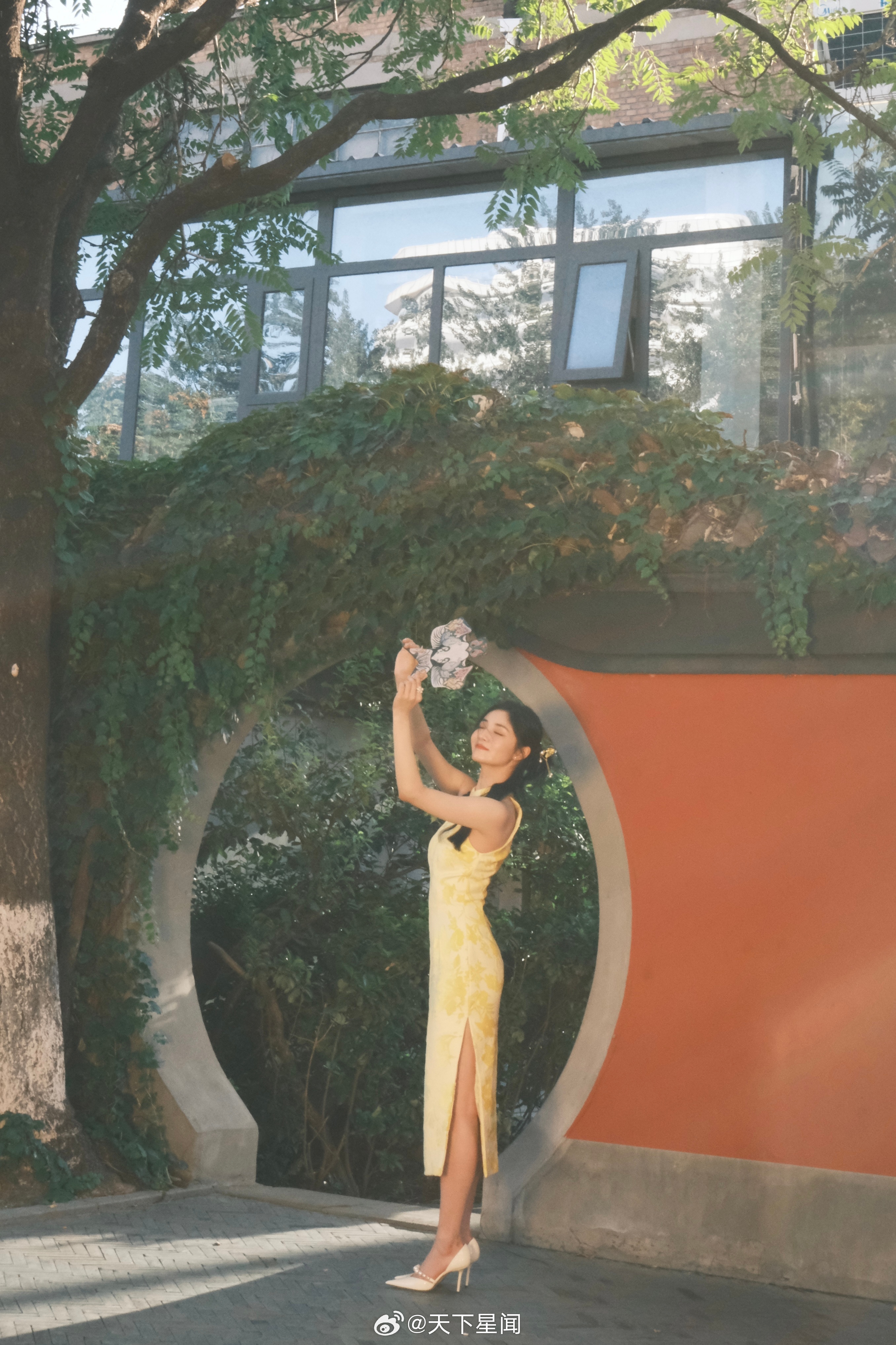 吴艳妮好有明星范儿啊,这个大长腿也太纤细了。