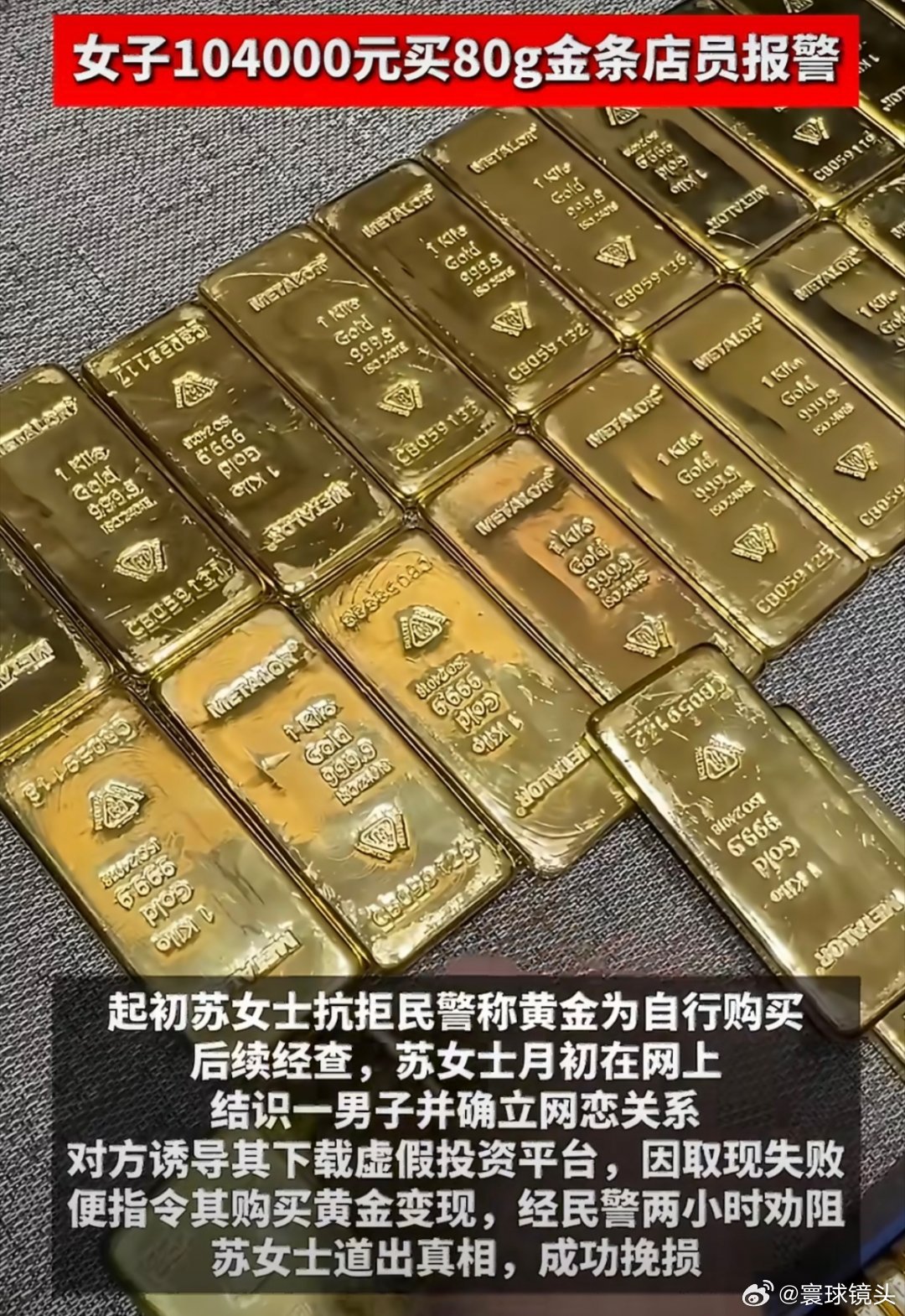 女子104000元买80g金条店员报警新闻中的这种骗术根本就不复杂,非常简单,可